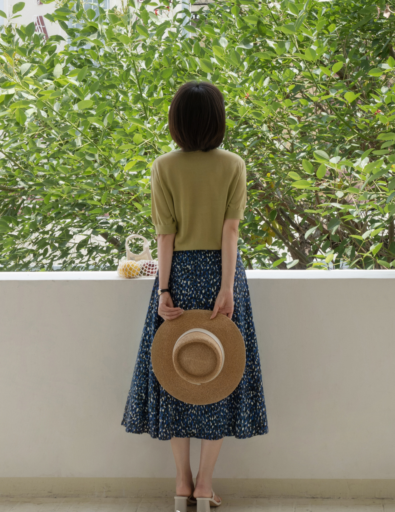 Avocado green items can be said to be quite tender and white, like this avocado green knitted short-sleeve paired with a blue floral skirt , the overall matching is elegant and fresh, even a mature woman in her thirties or forties can hold it no matter how well she wears it.