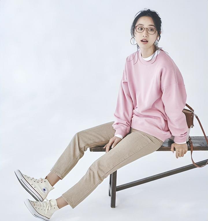 When choosing sweatshirts, we try to choose sweatshirts that are larger in size and not too thick. Because if the sweatshirt is too thick, it will easily cause bloat when layered, andmake the upper body look more inflated. , and will appear shorter.