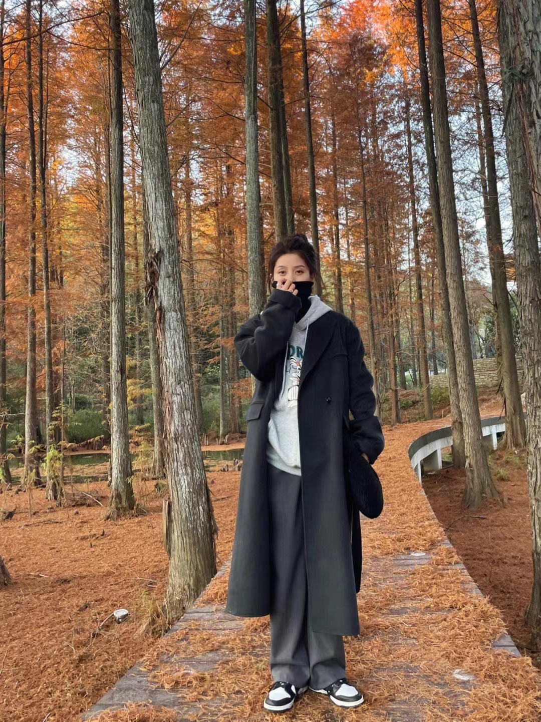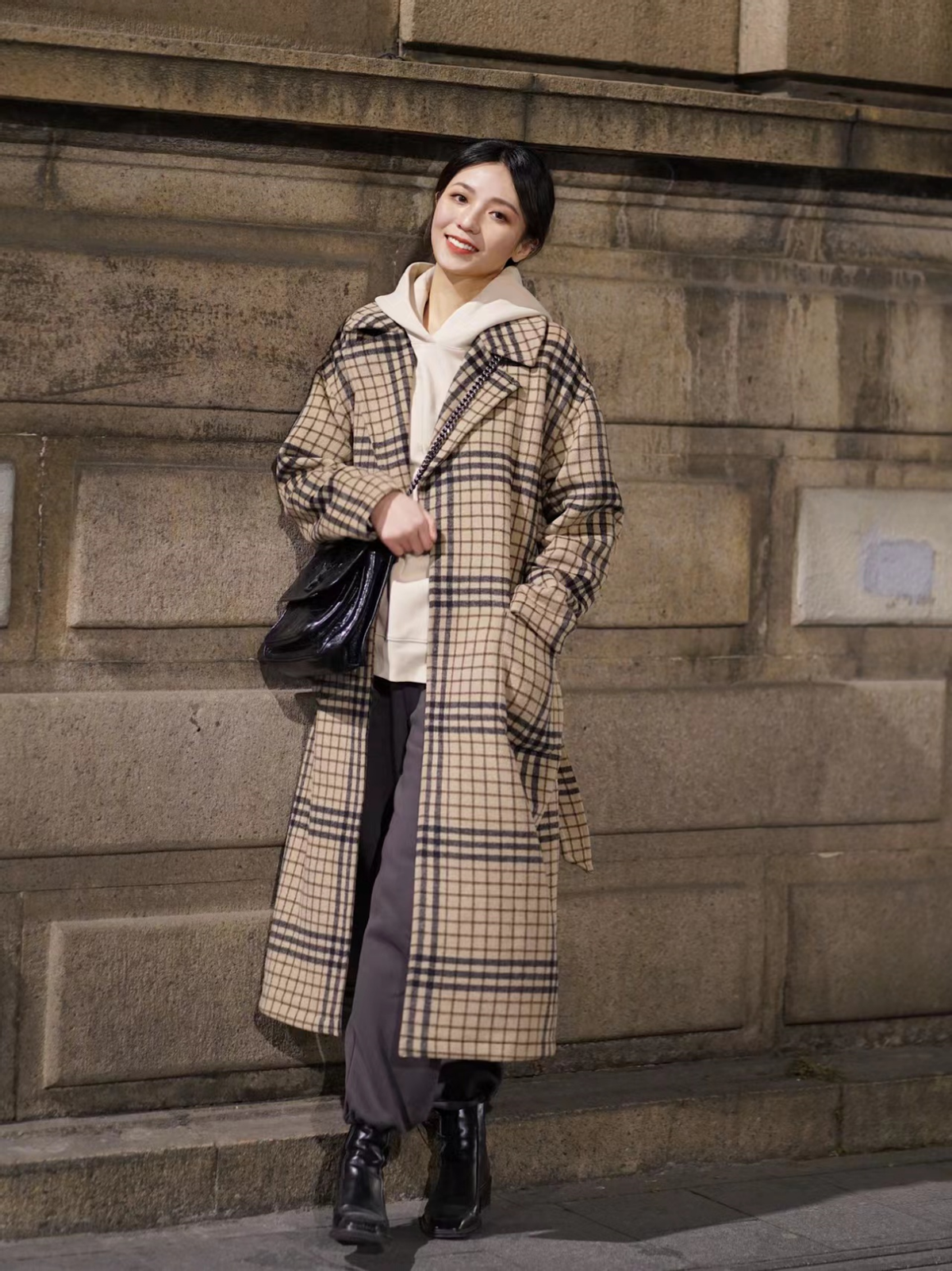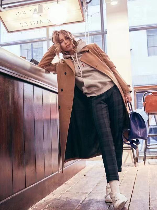 The combination of a sweatshirt and a coat is essentially a kind of layering. The most important thing about layering in autumn and winter is to pay attention to the combination of elasticity and tightness. We can choose an oversized coat if it cannot be worn with a heavy back and waist. The H-shaped coat is a good choice. It has smooth overall lines and crisp and stylish fabrics. It is basically suitable for girls of all shapes. Moreover, because of its strong lines, it can hide many body defects.