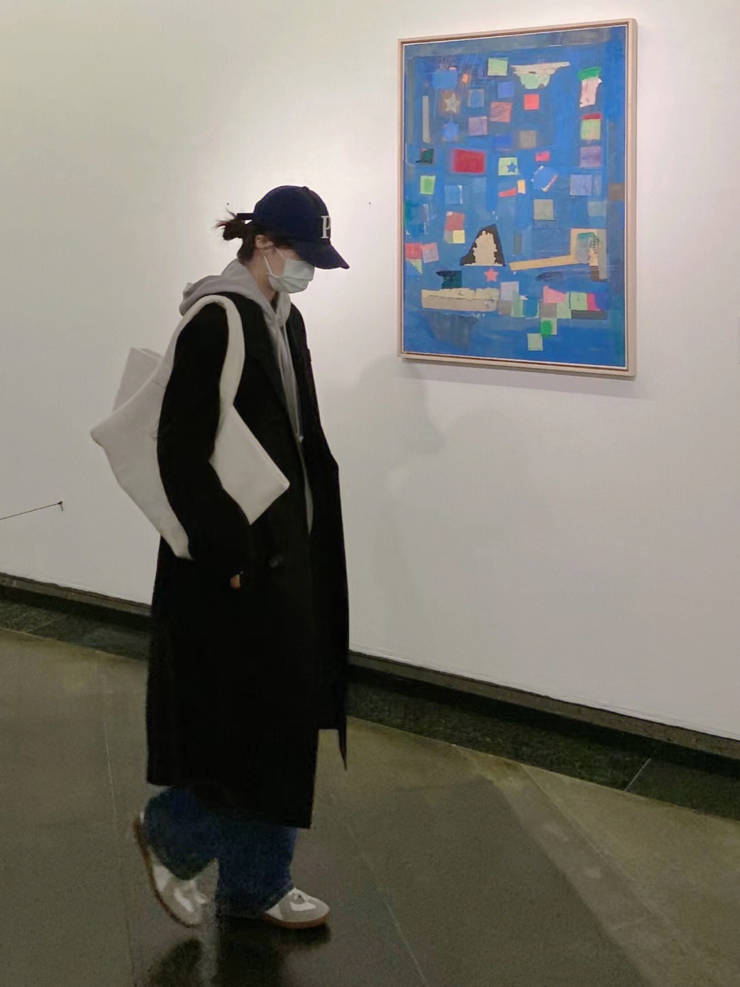 Black, white and gray are the most classic colors in autumn and winter. But in this look, the gray sweatshirt has a cartoon print on the chest, which makes the outfit visually clear and eye-catching. Paired with a gray coat and wide-leg pants, even in dark colors , and can also give the whole shape a lively and lively look.
