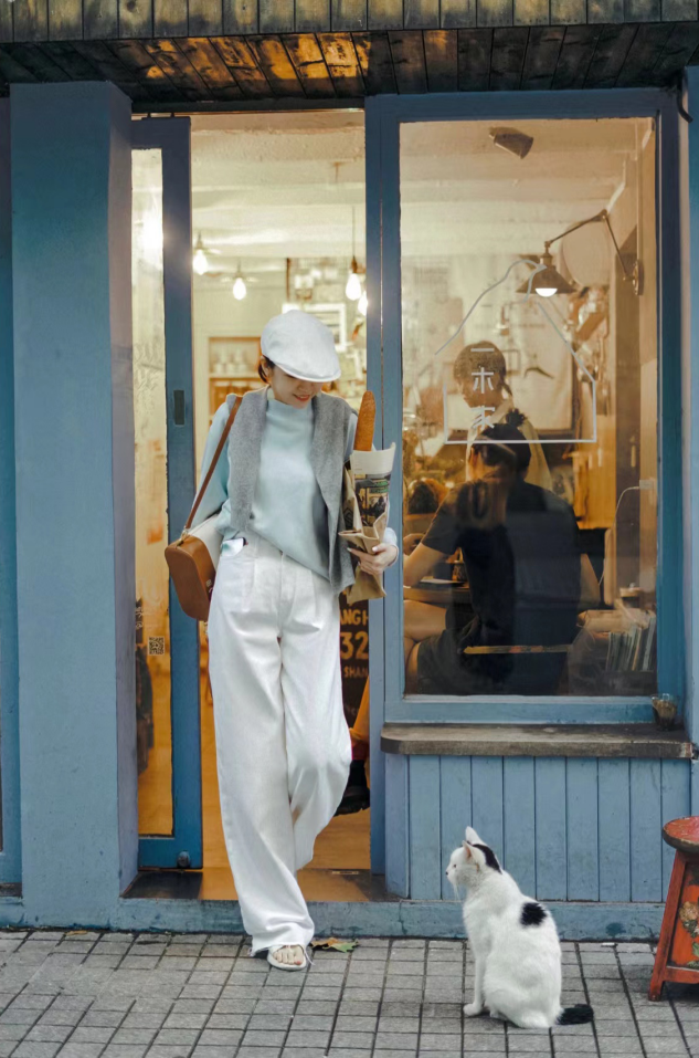 When wearing the same color system, everyone needs to pay attention to one thing, that is, the colors should not be completely uniform. It is best to make the lower body darker than the upper body, so as to maximize the ability of the skirt to cover up the flesh and make the body look slimmer. If you choose light gray for the upper body, you can arrange dark gray for the lower body, which will make you look slimmer while also enriching the sense of depth.