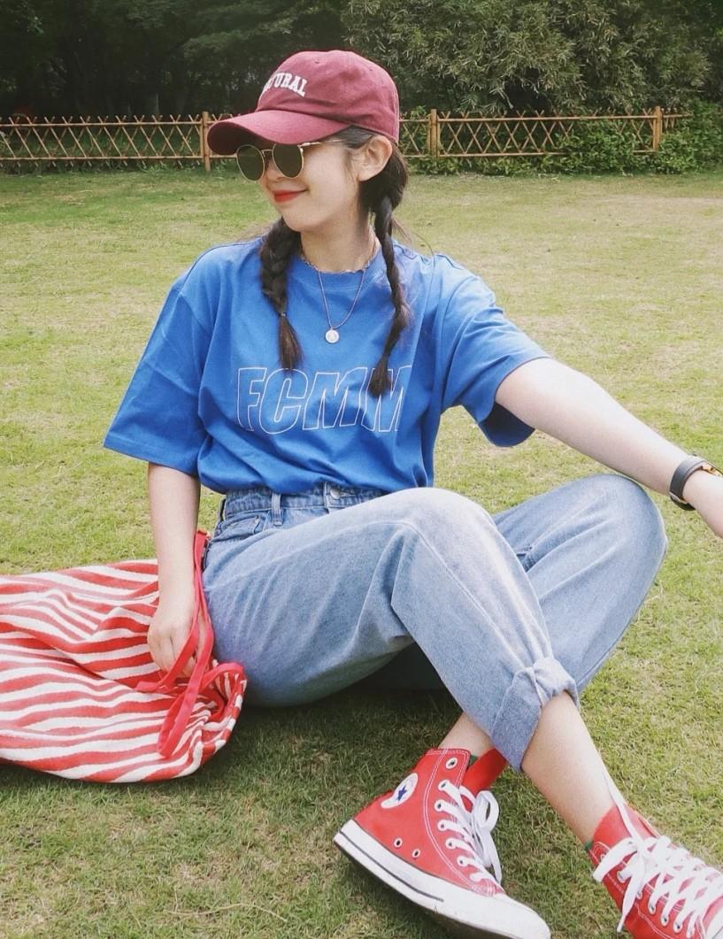 The first is the dropped shoulder T-shirt. The fabric of the dropped shoulder T-shirt is very elastic and softer. After adding the dropped shoulder design, it will be looser, which is very suitable for thinking. For sisters who want to look cool, add a simple black loose T-shirt with a delicate dropped shoulder design. Pair it with nine-point jeans to combine looseness and spirit. It is cool and handsome, and full of youthful feeling.