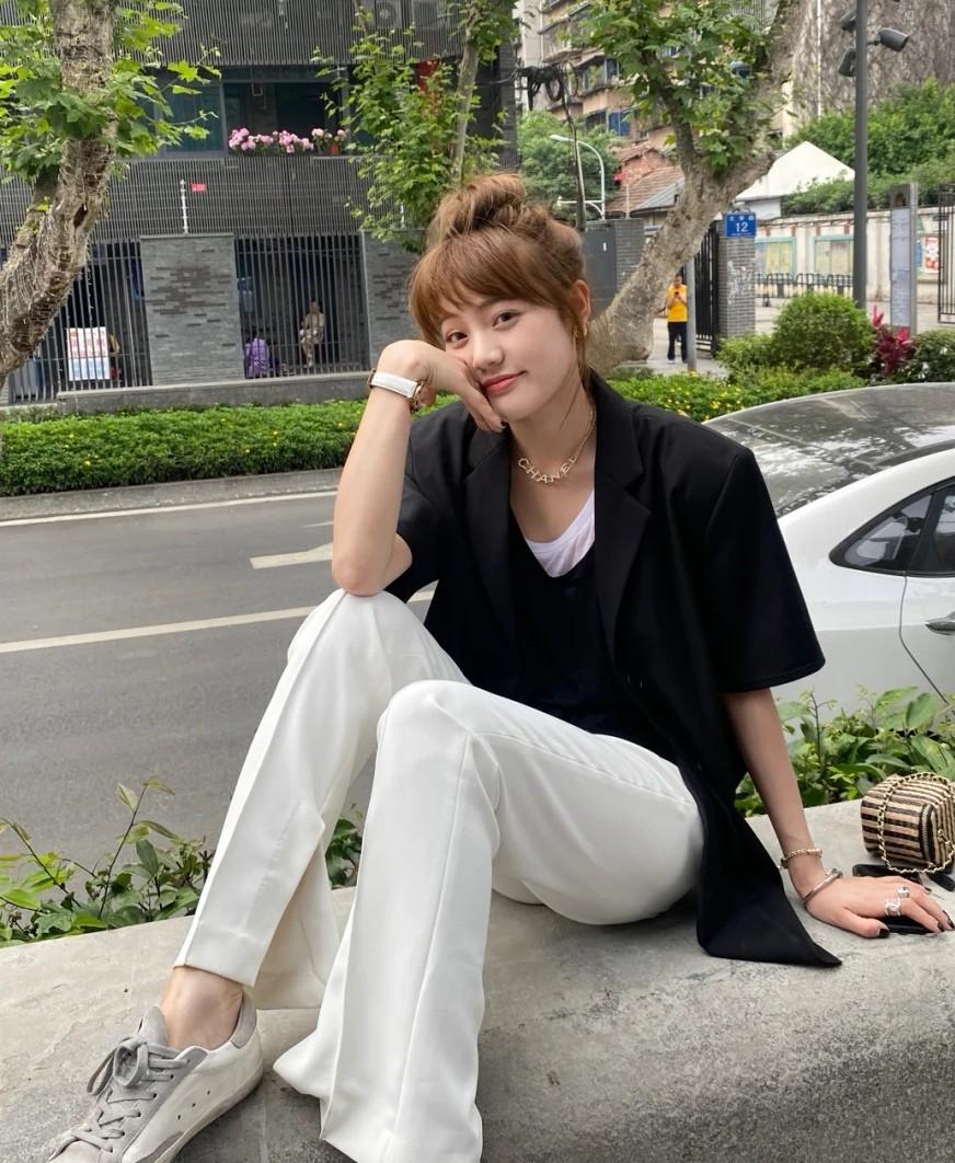 The half-sleeved suit with dropped shoulders makes the shoulders look wider, which is very suitable for girls who want to create an aura.