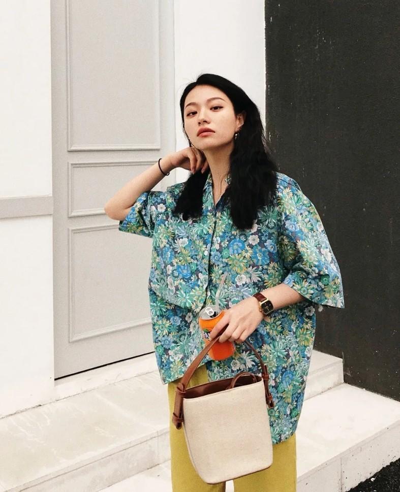 Coupled with the stiff shirt fabric and the tiled printing full of oil painting, the outfit shows a very high-end artistic sense, casual and free. .