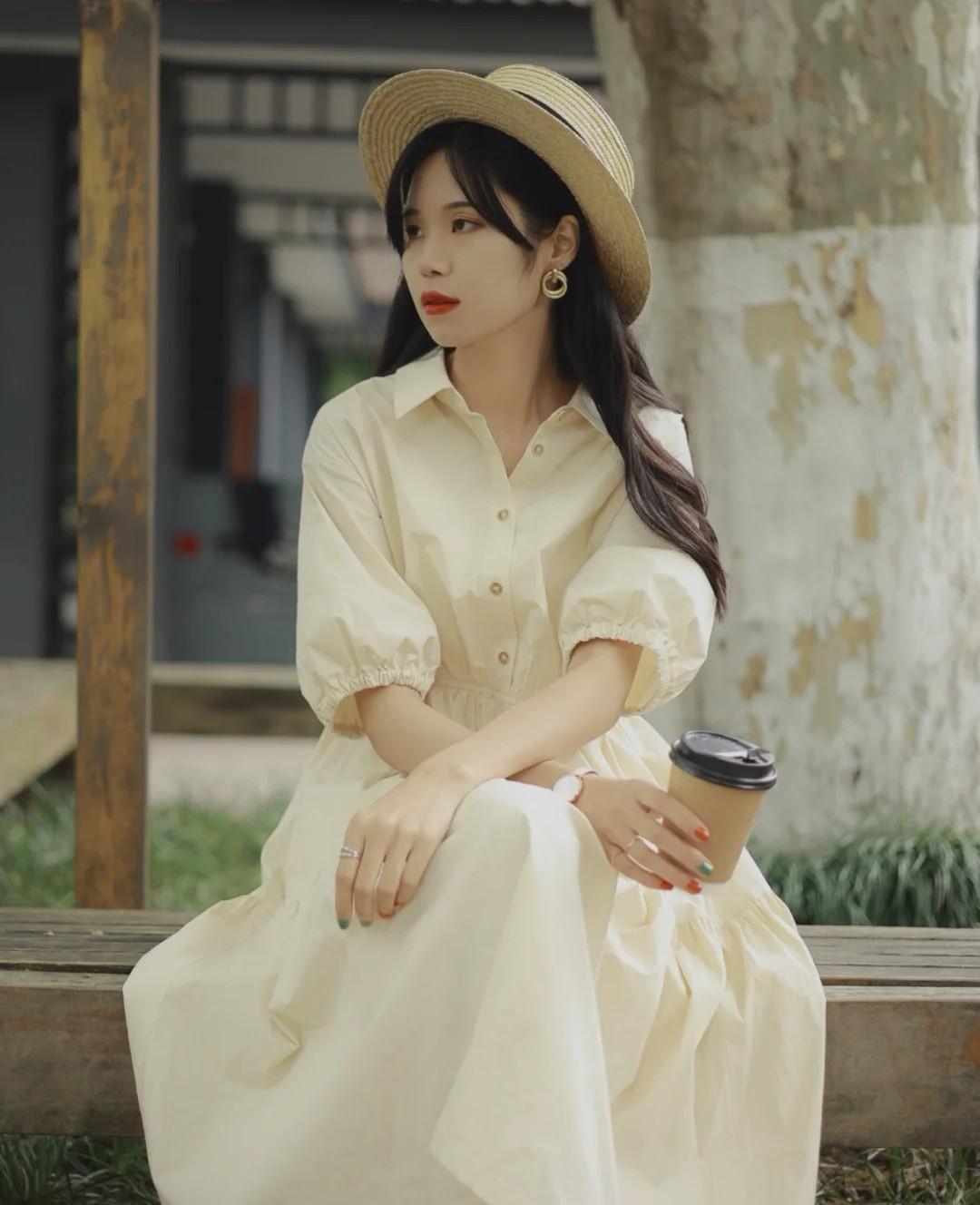 Dropped sleeves in dresses are rare, but they are particularly eye-catching every time they appear. Most summer dresses are more elegant. It makes it look very light and lively, and the casualness of the dropped shoulder sleeves is the most suitable for this kind of temperament. Coupled with small lace like the one in the picture, it adds to the complexity of the outfit. Avoid dresses that are too boring.