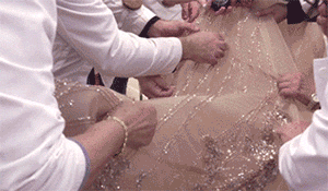 The more famous ones are probably the custom-made cheongsams worn at celebrity weddings, such as the cheongsam dresses worn by Liu Shishi, Angelababy and others, all made by Guo Pei.