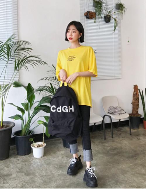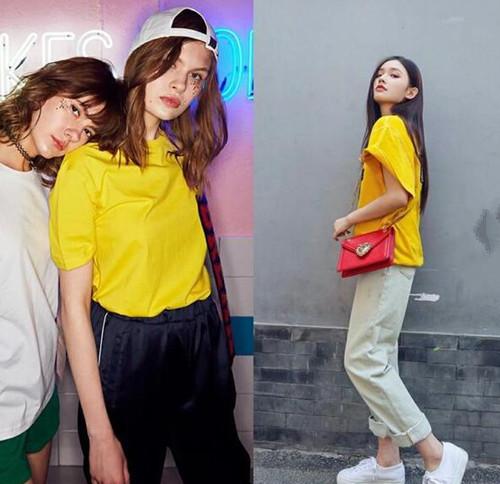 The bright and eye-catching yellow is very suitable with the low-key black, so that the whole body color matching will not appear too prominent and maintain the Appropriate area will make your figure more visible. A pair of black tights paired with a loose yellow T-shirt, wide at the top and narrow at the bottom, bright at the top and dark at the bottom, makes you look very slim.