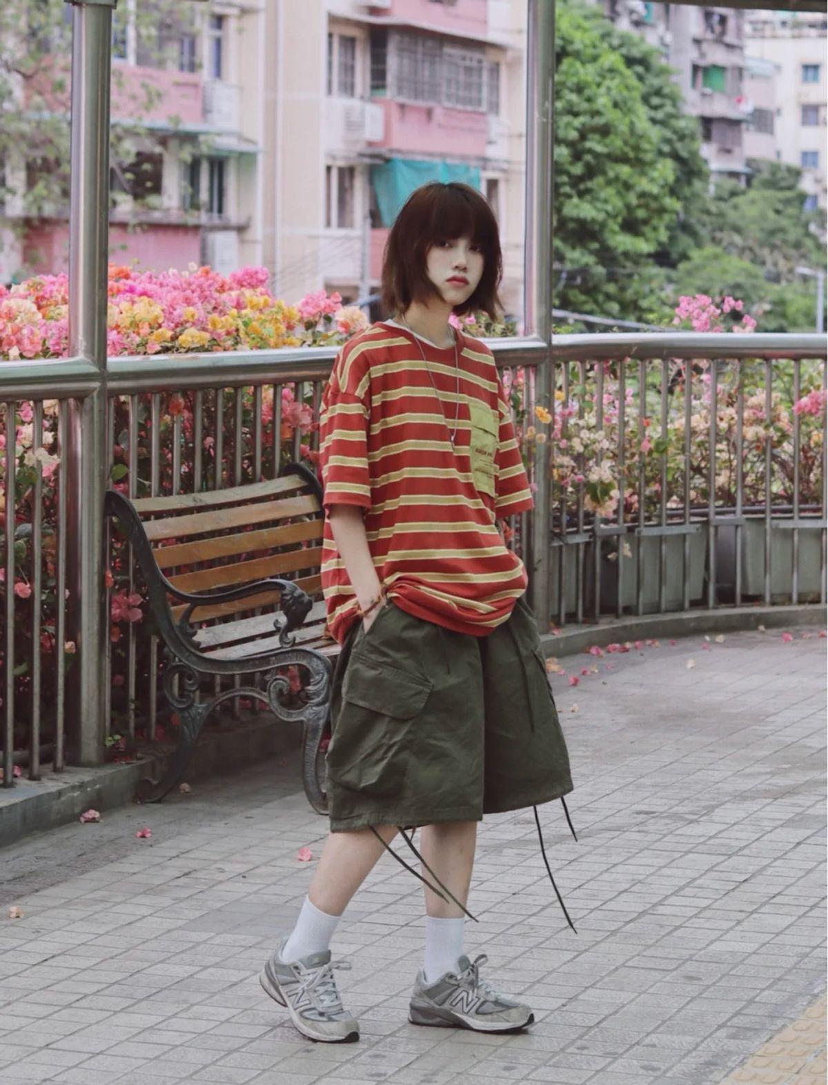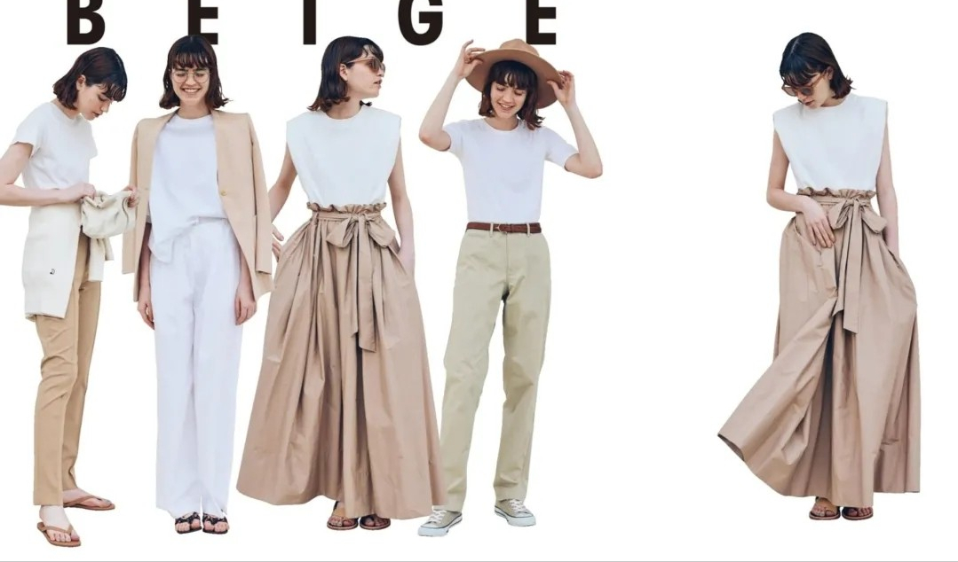 ③Japanese retro style:You can choose dark colors such as earth tones Pair with white, navy blue, smoke gray T-shirts, etc. For example, a navy T-shirt can be paired with brown, white, khaki skirts, pants, etc. For skirts, you can choose straight skirts, umbrella skirts, etc. For pants, you can choose wider-legged trousers, such as straight pants, loose flared pants. , wide-leg pants, etc.