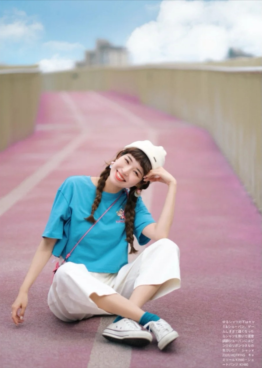 ②Vitality girl style:Of course, energetic girls should choose something suitable for summer The macaron color system is used as a match. The colors are colorful, just like the hot summer. Specific matching: For example, purple short T-shirt with white pants, white T-shirt with blue pants, etc. You can choose overalls, jeans, half-length pants and skirts, etc. In addition, you can choose more accessories to enhance your style, such as canvas bags, earrings, canvas shoes, etc.