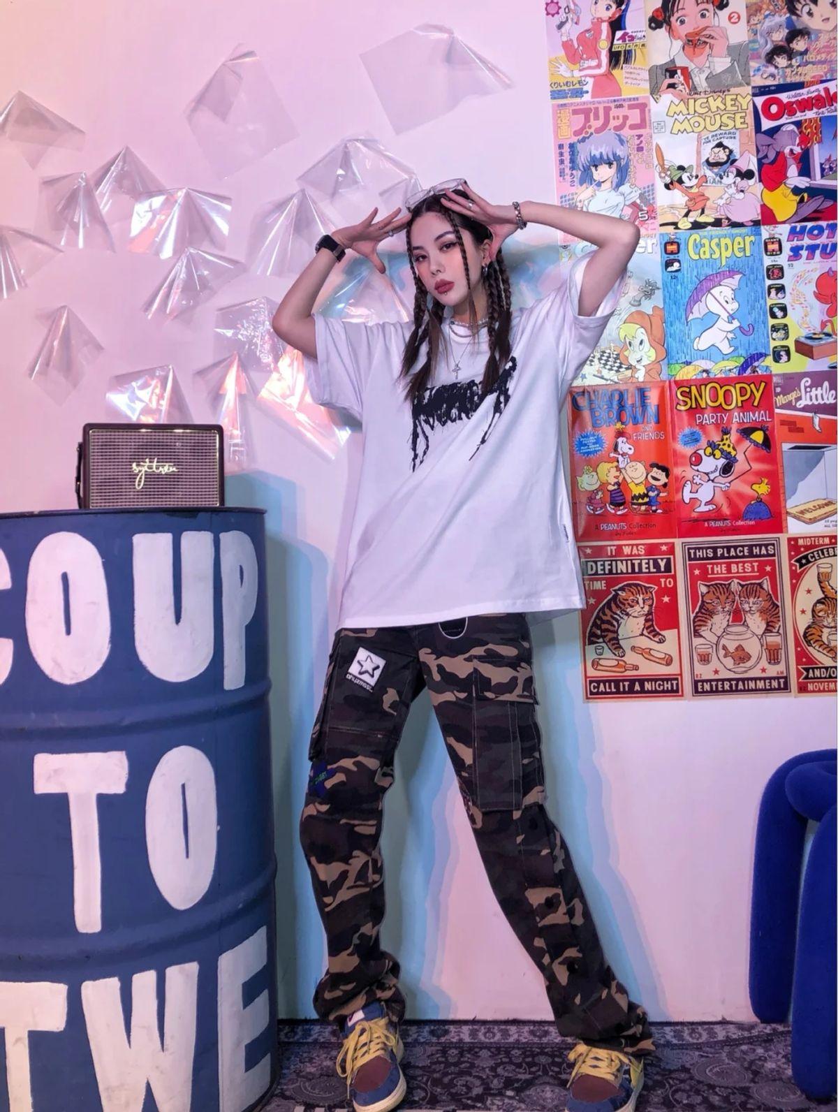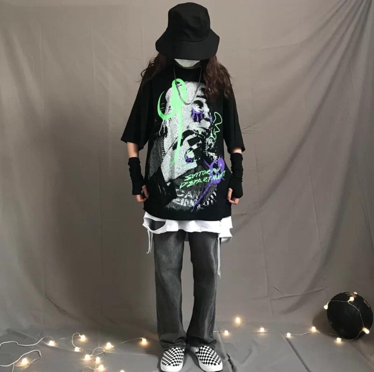 ③Hip-hop style:Hip-hop style outfits originate from the European and American fashion circles. A kind of street culture. This style of clothing is mainly loose-fitting. The overall feeling is baggy and eye-catching. That is to say, remember to choose an eye-catching T-shirt, such as a bright color or a T-shirt with an exaggerated pattern. T-shirt, after all, a T-shirt accounts for 50% of the visual effect. For pants, you can choose loose ripped pants, overalls, etc., and for accessories, you can choose headscarves, thick necklaces, etc.
