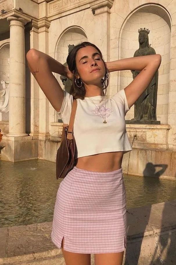 ①American college style:Compared with the orthodox clothing of Japanese and Korean college style With a sense of seriousness, the American college style is more relaxed and easy to integrate into daily wear. It is generally based on plaid elements and is paired with solid-color items or suits. Choose a T-shirt with a navel, and a skirt with a short skirt, such as Hip skirts, pleated skirts, etc.