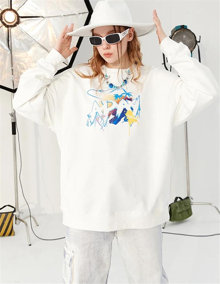 Compared with solid-color styles, printed sweatshirts can be cool, childlike, and gentle. They are very versatile and are definitely a must-have and popular item in spring.