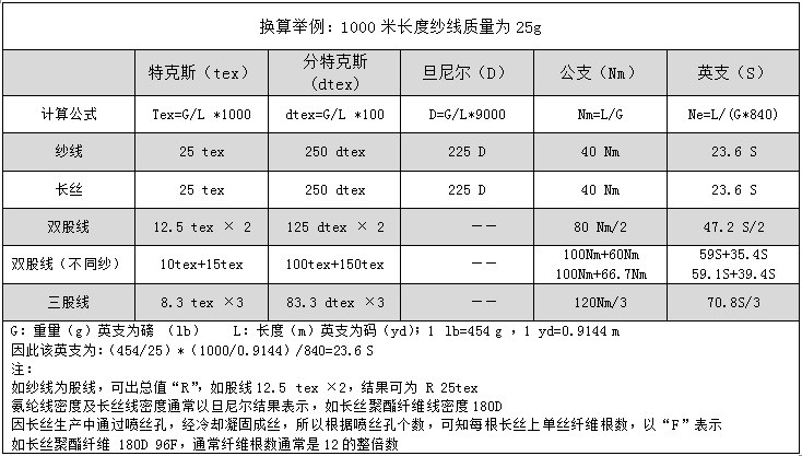 Linear density refers to the thickness of yarn. Linear density is one of the most important physical properties of fiber. It not only affects textile processing and product quality, but is also closely related to the wearing properties of the fabric. Likewise, linear density is also the most important indicator of yarn. The linear density of yarn affects the physical and mechanical properties, feel, style, etc. of textiles. It is also one of the important basis for fabric design.