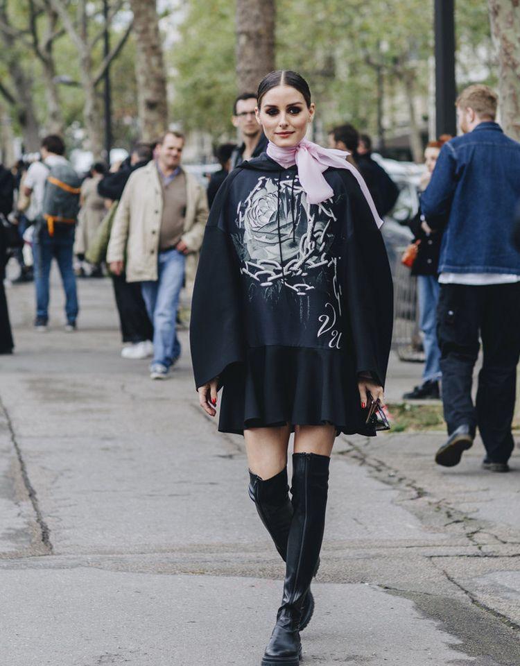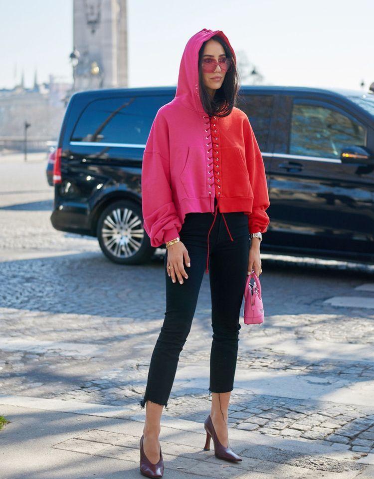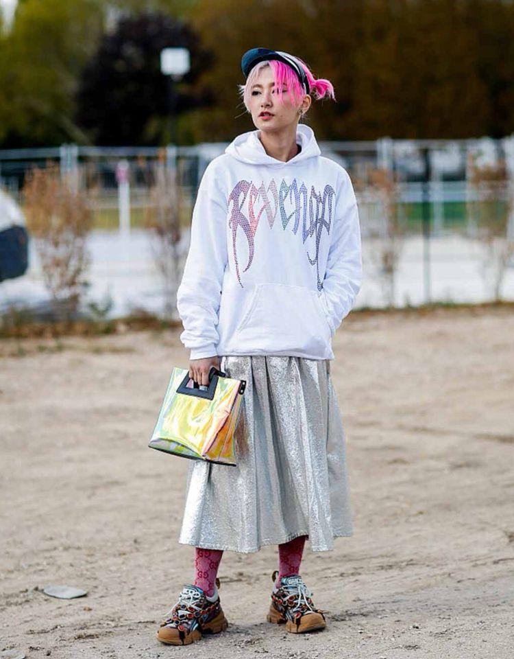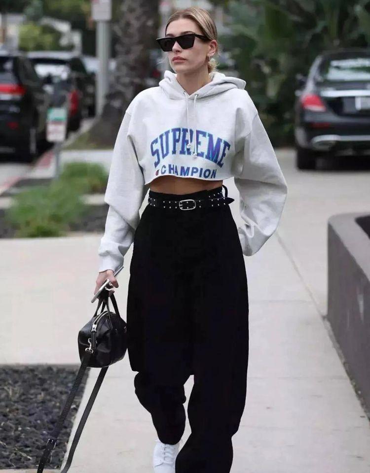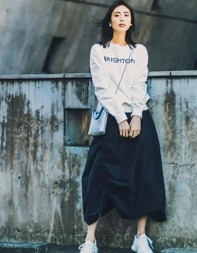 Thick legs, not straight legs: Pair a sweatshirt with cigarette pants, wide-leg pants, or a skirt to cover up your shortcomings. It can also enhance the style.