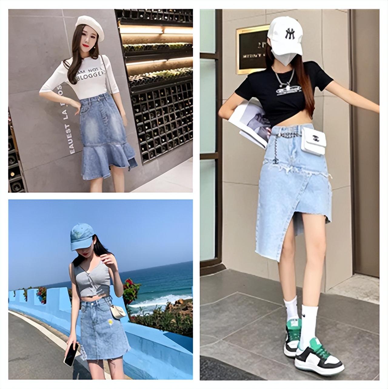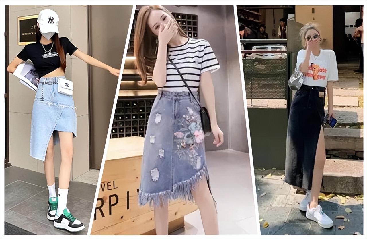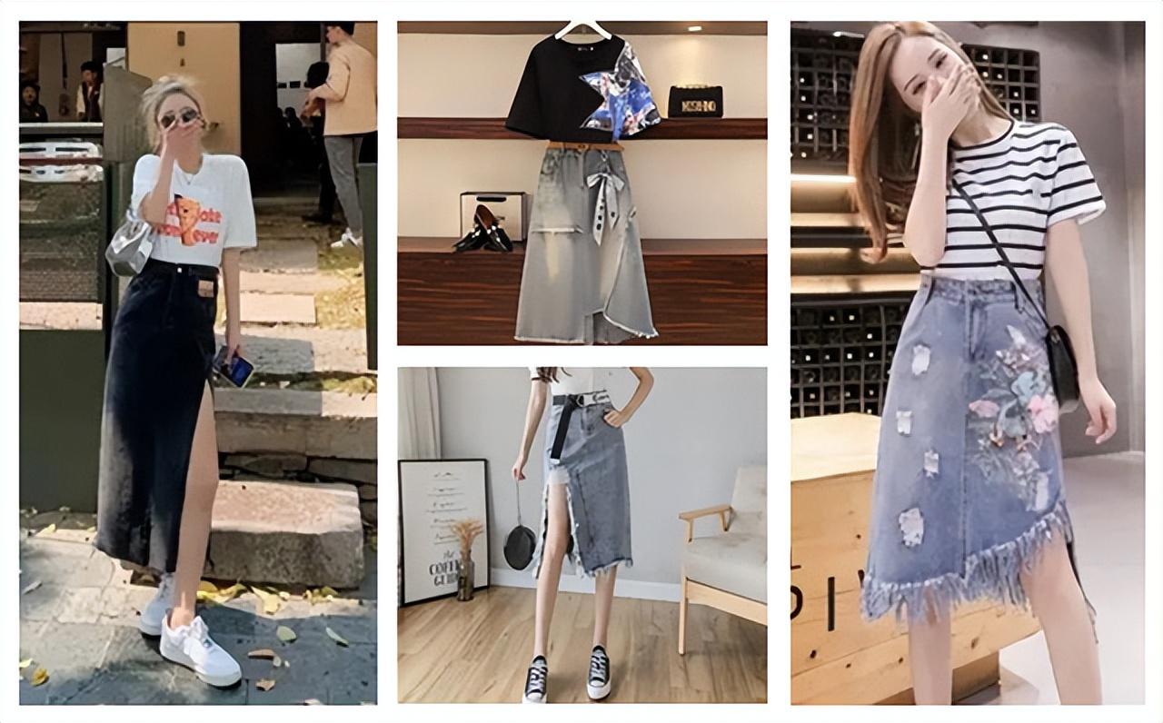 Regular denim half If you wear a skirt with an ordinary T-shirt, you may feel that the whole outfit is as plain as a passerby. However, if you change it to a personalized T-shirt with a full sense of design, the whole outfit will instantly improve your style, transforming from a passerby to a fashionista in an instant. However, when choosing a personalized T-shirt, you should also choose the appropriate style according to your personal body characteristics. For example, if you have fat on your belly, wearing an ultra-short T-shirt that exposes your belly button will be a disaster scene, but wearing one with wrinkles on the abdomen, etc. A T-shirt with a flesh-covering design can easily cover up belly fat.