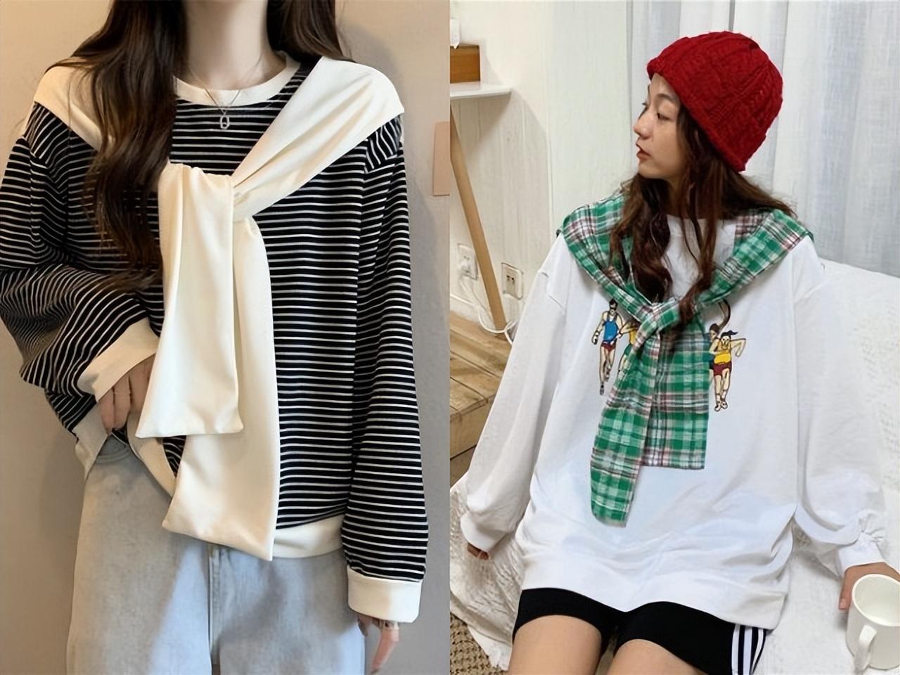 Pair a long-sleeved T-shirt with a sweatshirt or sweater cardigan, which is fashionable and casual, salty or sweet, and full of youthful vitality.