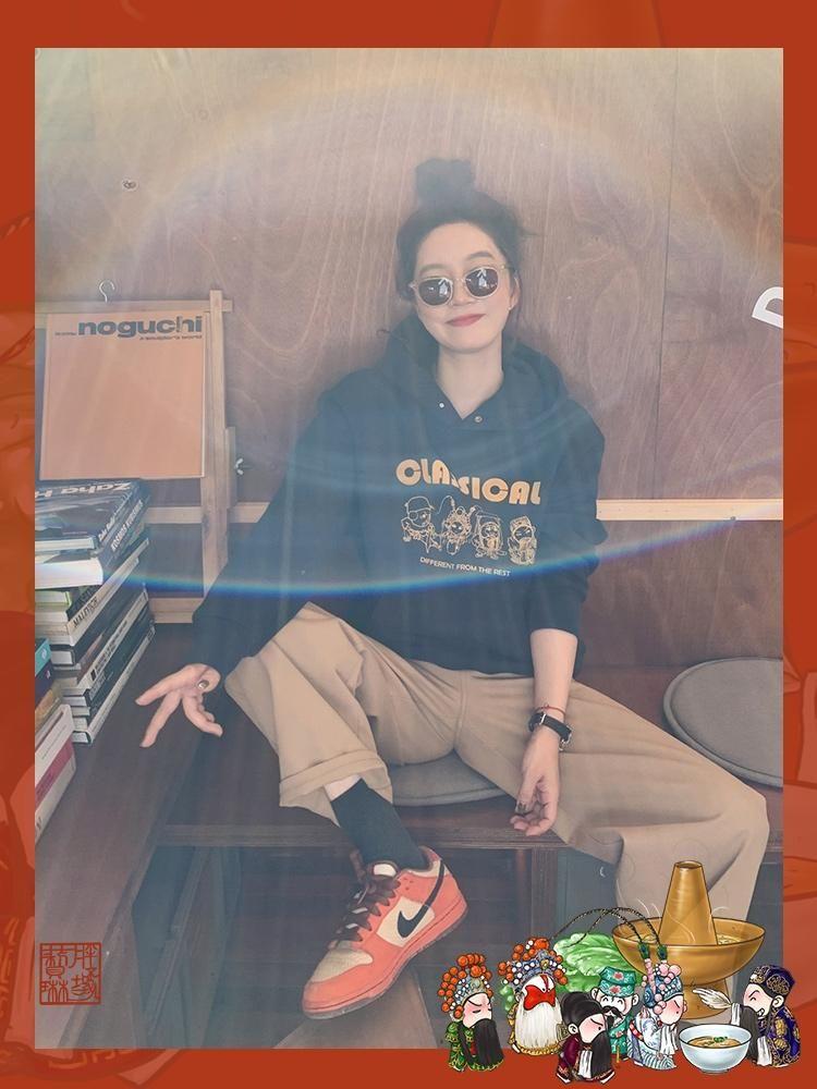 Although the tight black pants make the legs look slimmer, they have no obvious leg lines. The entire lower body is ‘loose’, and the sweatshirt The loose version makes the upper body ‘bloated’, plus dark blue and black. The “thick” color scheme not only fails to highlight the casual feel of the sweater, but instead looks full of “earthy aunty” feeling.