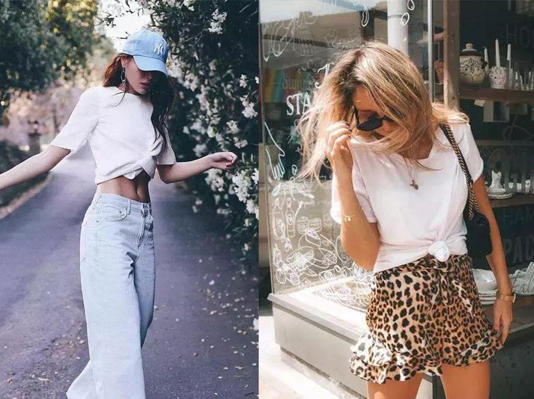 4. Tying a knot at the hem of your T-shirt is also a fashionable way to improve your waistline.