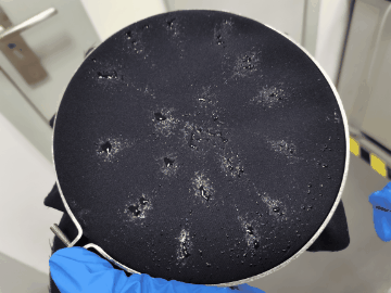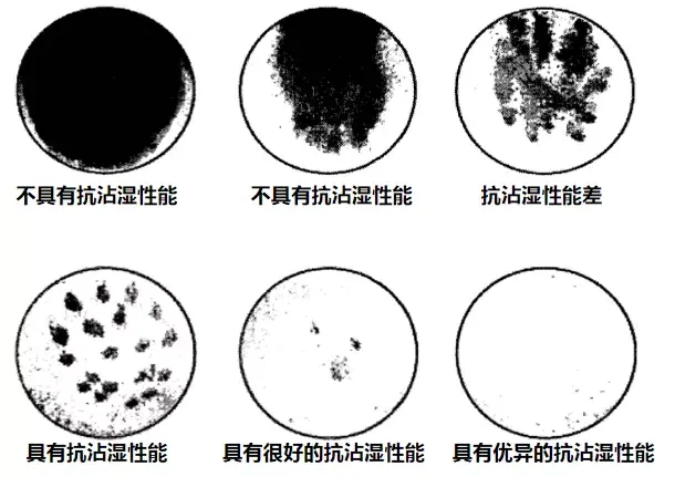 The black shaded part is the part wetted by water after the experiment. The smaller the black part, The smaller the resistance of the fabric surface to being wetted by water,Indicates that the waterproofness of the fabric is better.