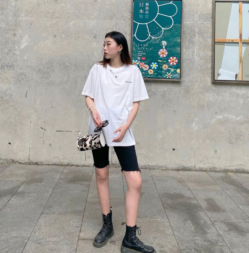 This summer, a popular outfit is called a big T-shirt + cycling pants (cool, fashionable and makes your legs look longer)