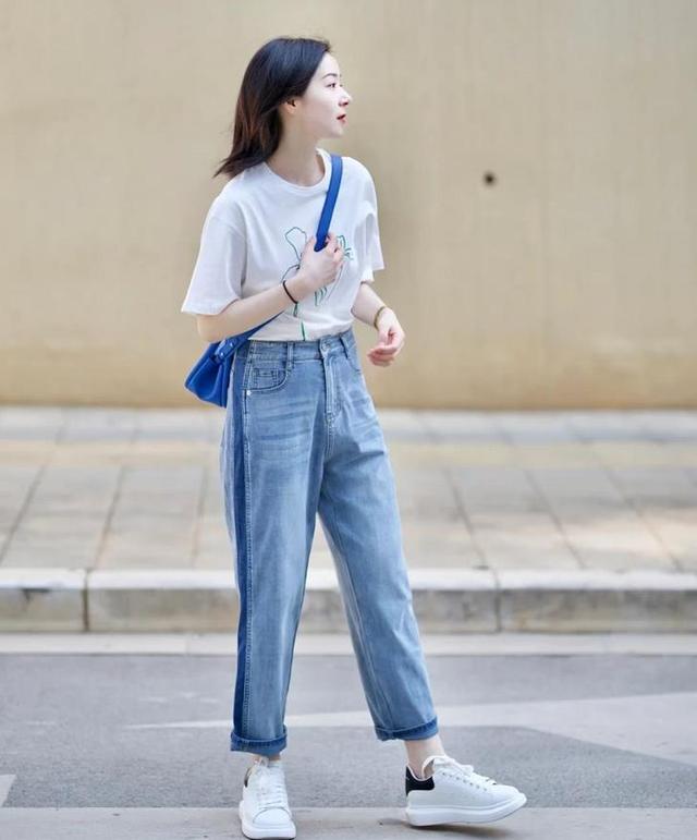 What to do with crappy T-shirts What can I wear to look more fashionable? In addition to choosing a variety of denim items to match, choosing the right shoes is also very important. Here, Lily highly recommends sports shoes. These shoes are full of casual style and extremely comfortable to wear. When combined with a T-shirt, they really look youthful.