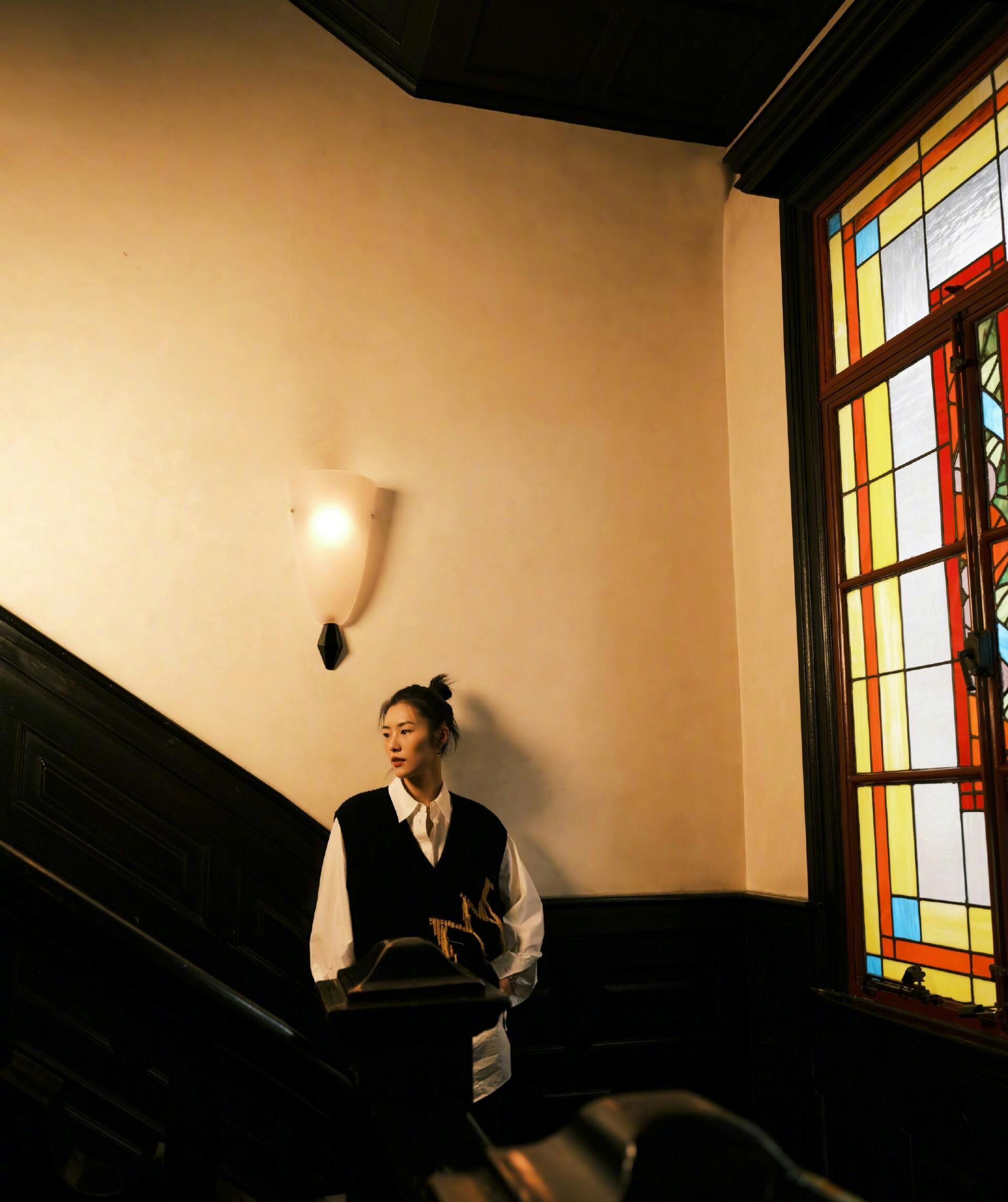 Pair it with a dark vest, which can be worn outside or inside. Paired with a long coat, the whole look is full of popularity. Liu Wen also had a bun, which is both neat and age-reducing. Everyone can learn how to do it.