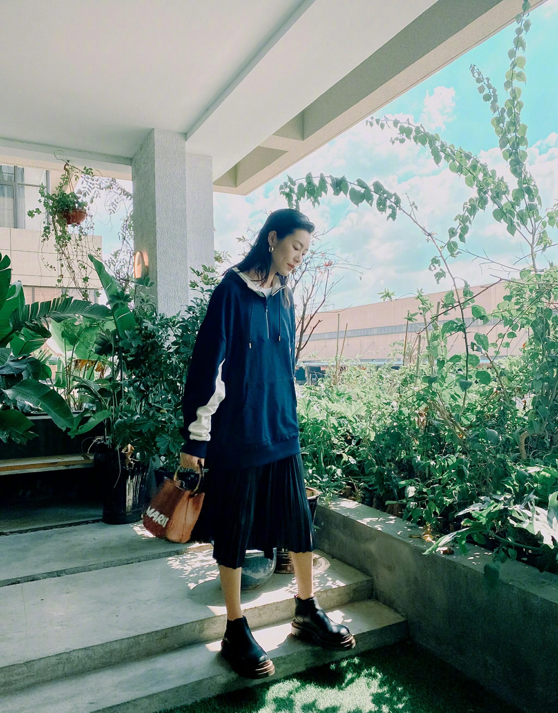 The combination of white and black is the most classic and versatile. Liu Wen’s pullover sweatshirt makes her look fresh and pure. Although the style of this dress is good-looking, one thing you should pay attention to when wearing it is that there is no drawstring at the hem, which is not very friendly to fat girls or big-breasted girls. It will make the dress fluffy and make the dress look fatter.