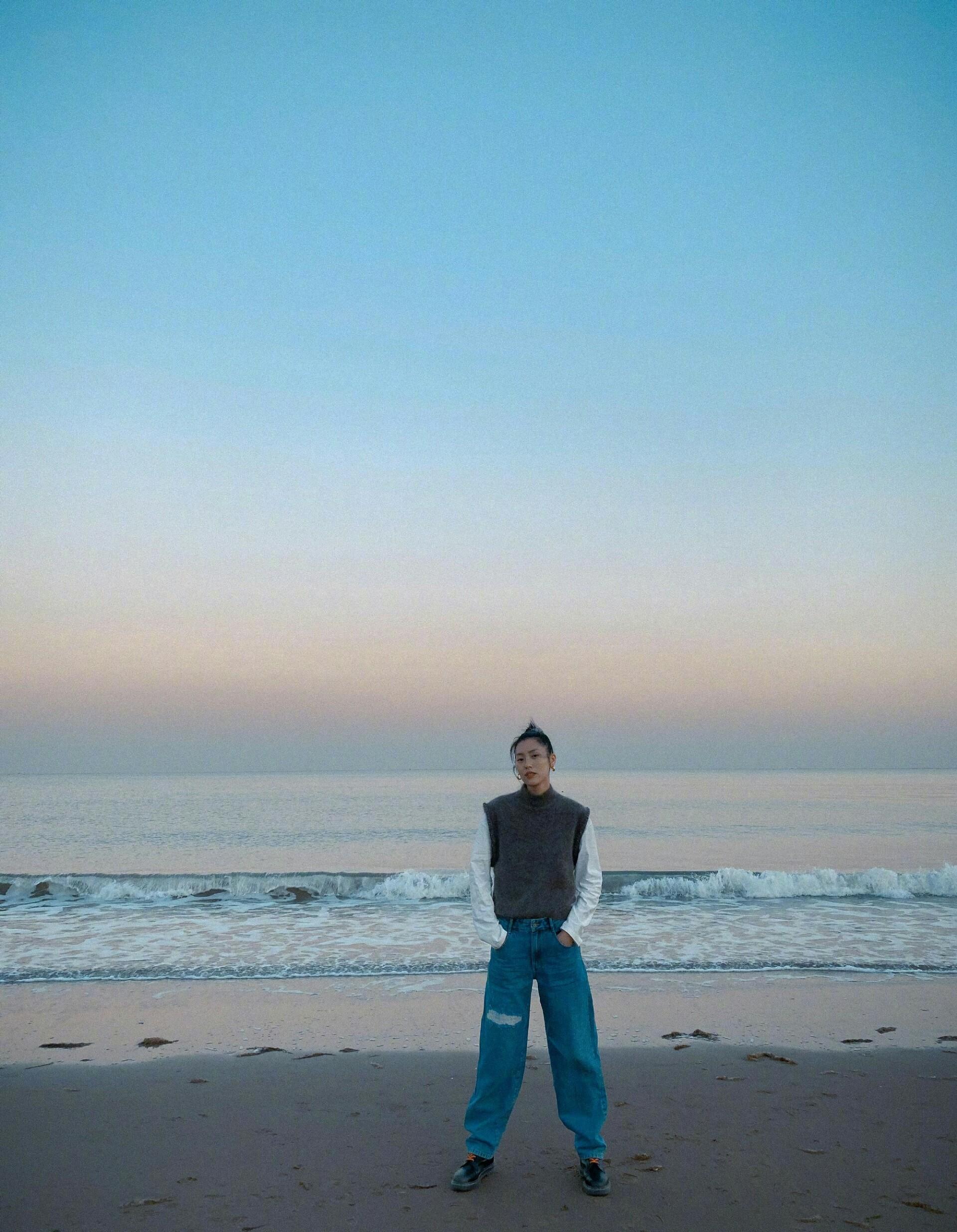 The outside is a sherpa vest. When you are at the beach, the sea breeze is blowing and you really need a thick coat. The best match for this sherpa jacket is a sweatshirt. Because it is relatively loose, there are no restrictions on body shape, which also greatly increases its audience base, and most people can choose it.