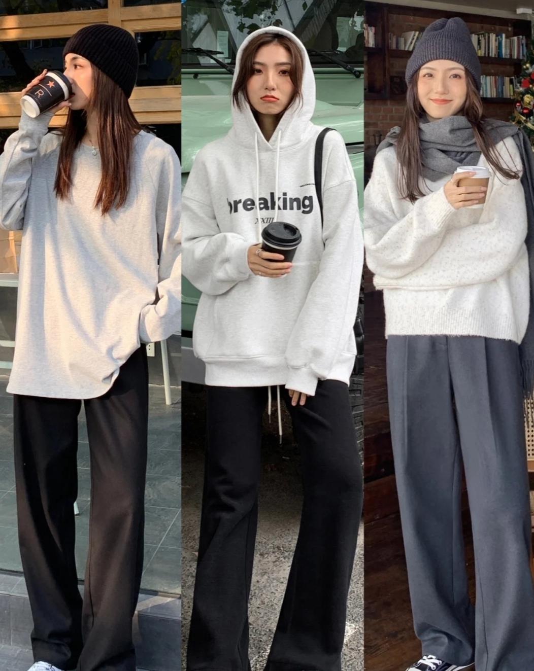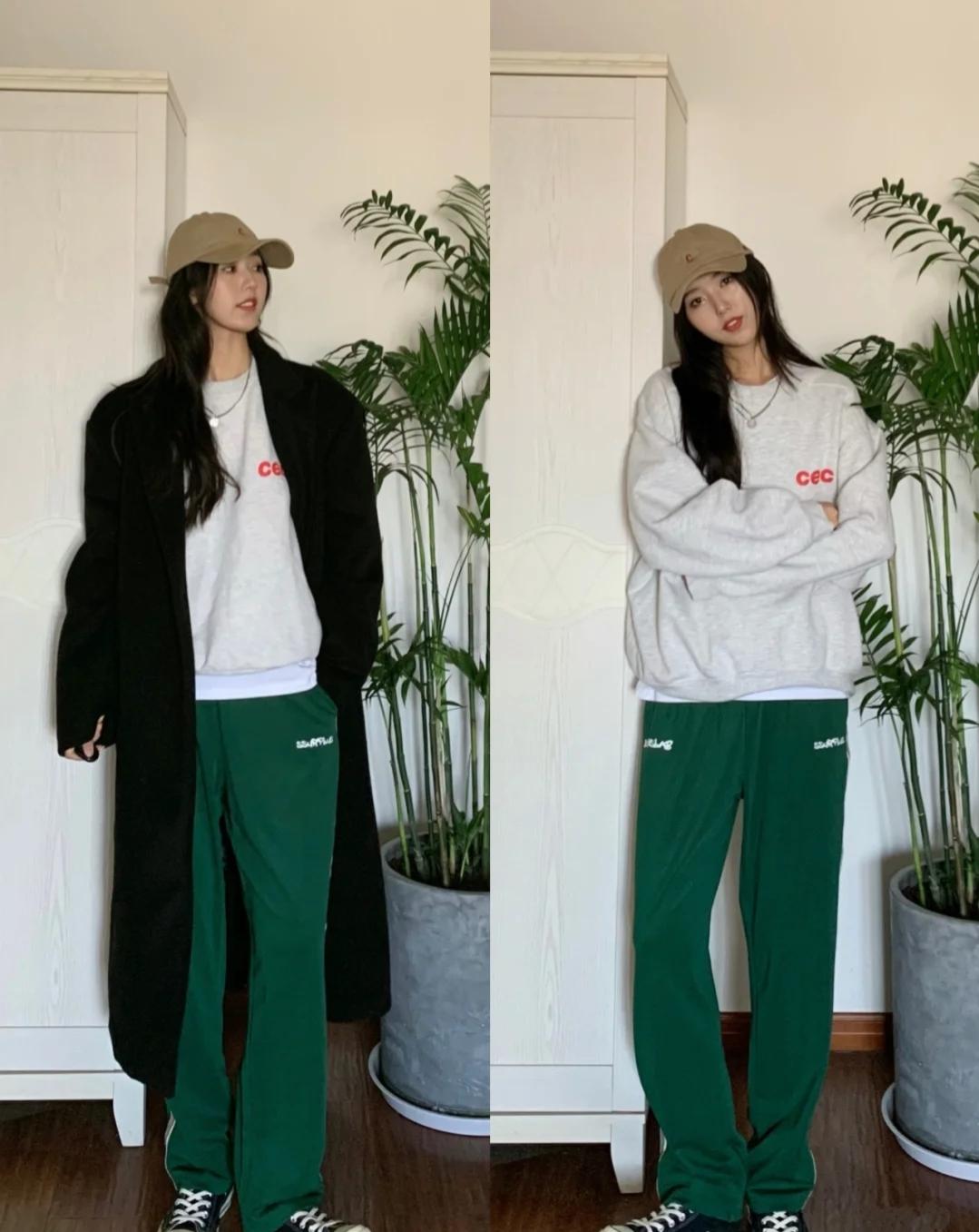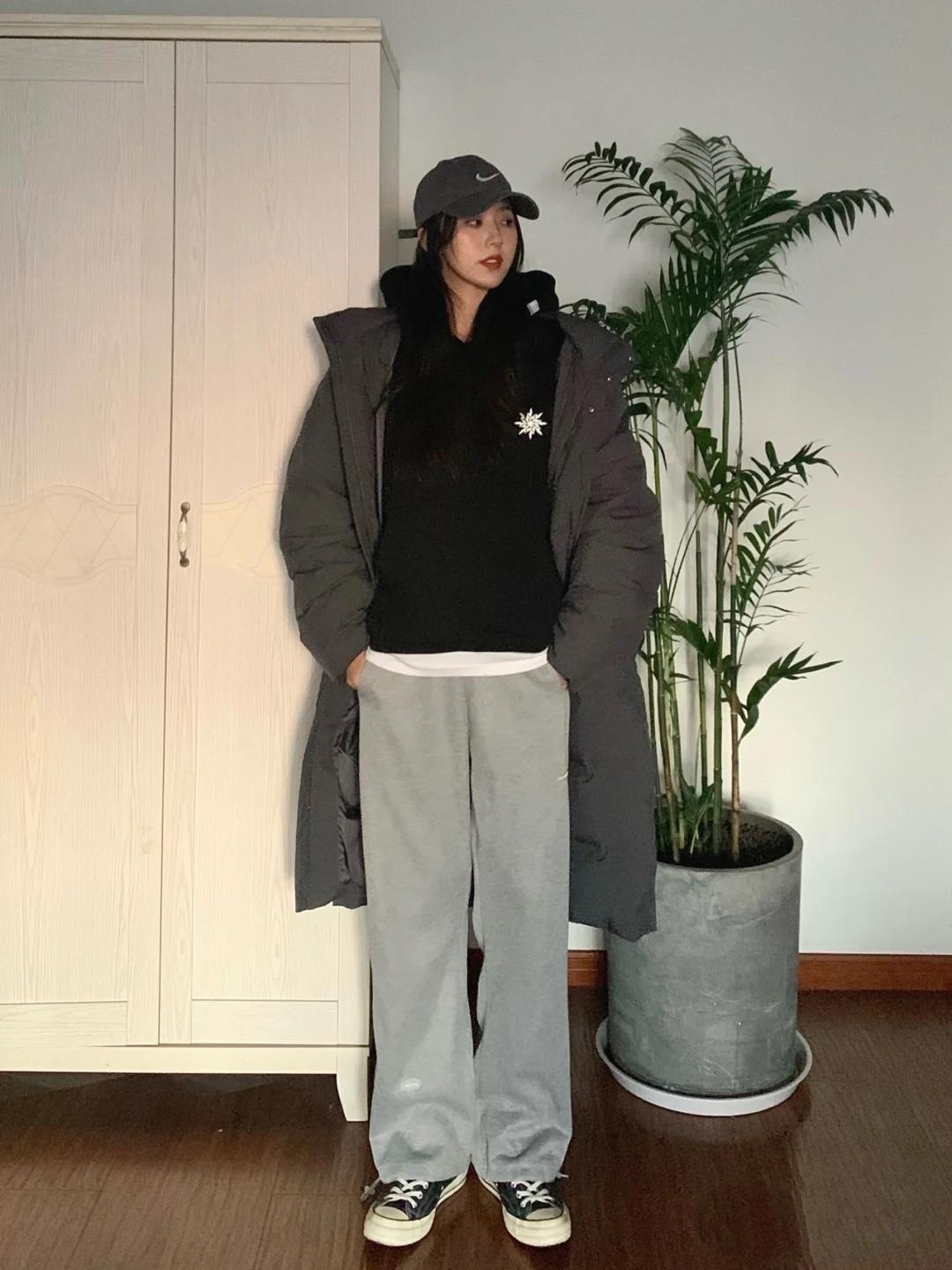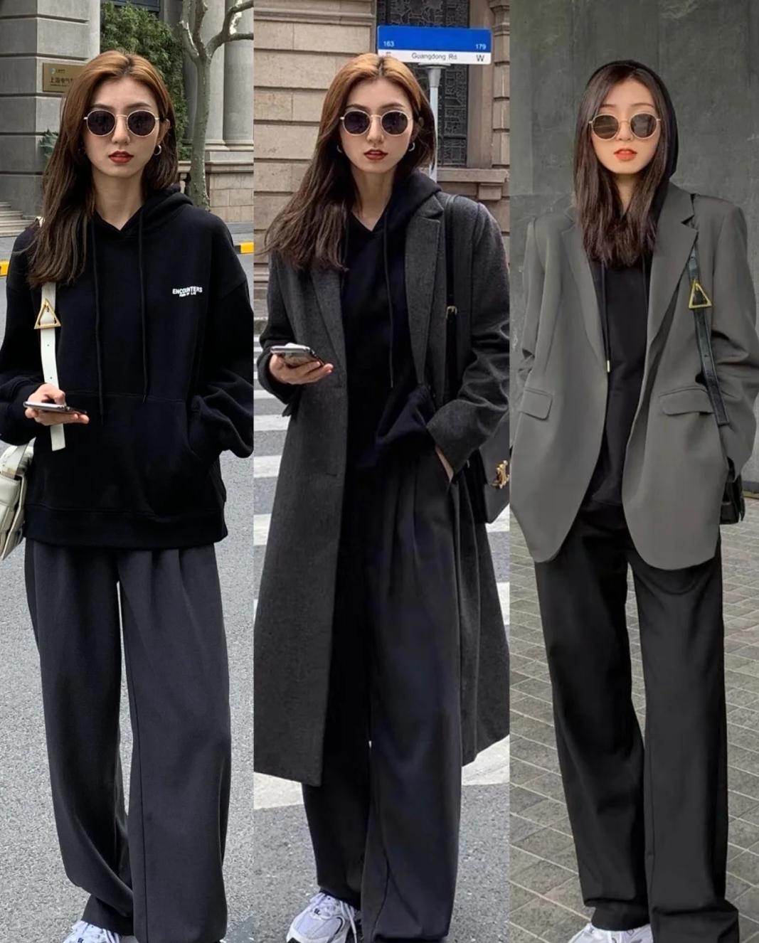 For women who pursue casual fashion and a sense of youth, wear a coat + sweatshirt in winter. For trousers, you can consider wearing wide-leg floor-length sweatpants. .