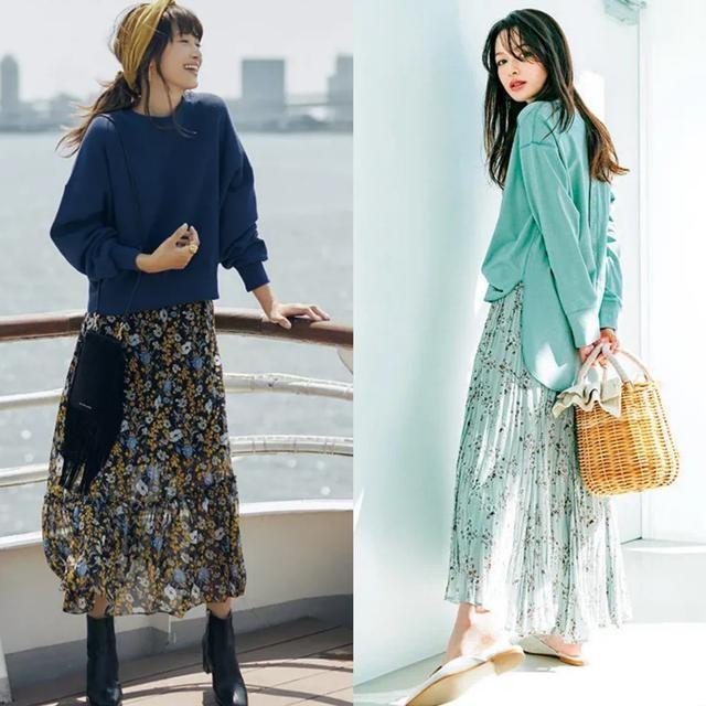 First of all, let me talk about the matching that is more suitable for this season. A sweater combined with a bust Skirts can present a sense of visual tenderness. This matching style is usually more casual and suitable for some daily casual occasions. The design of the skirt is presented with floral elements, which is full of sophistication.