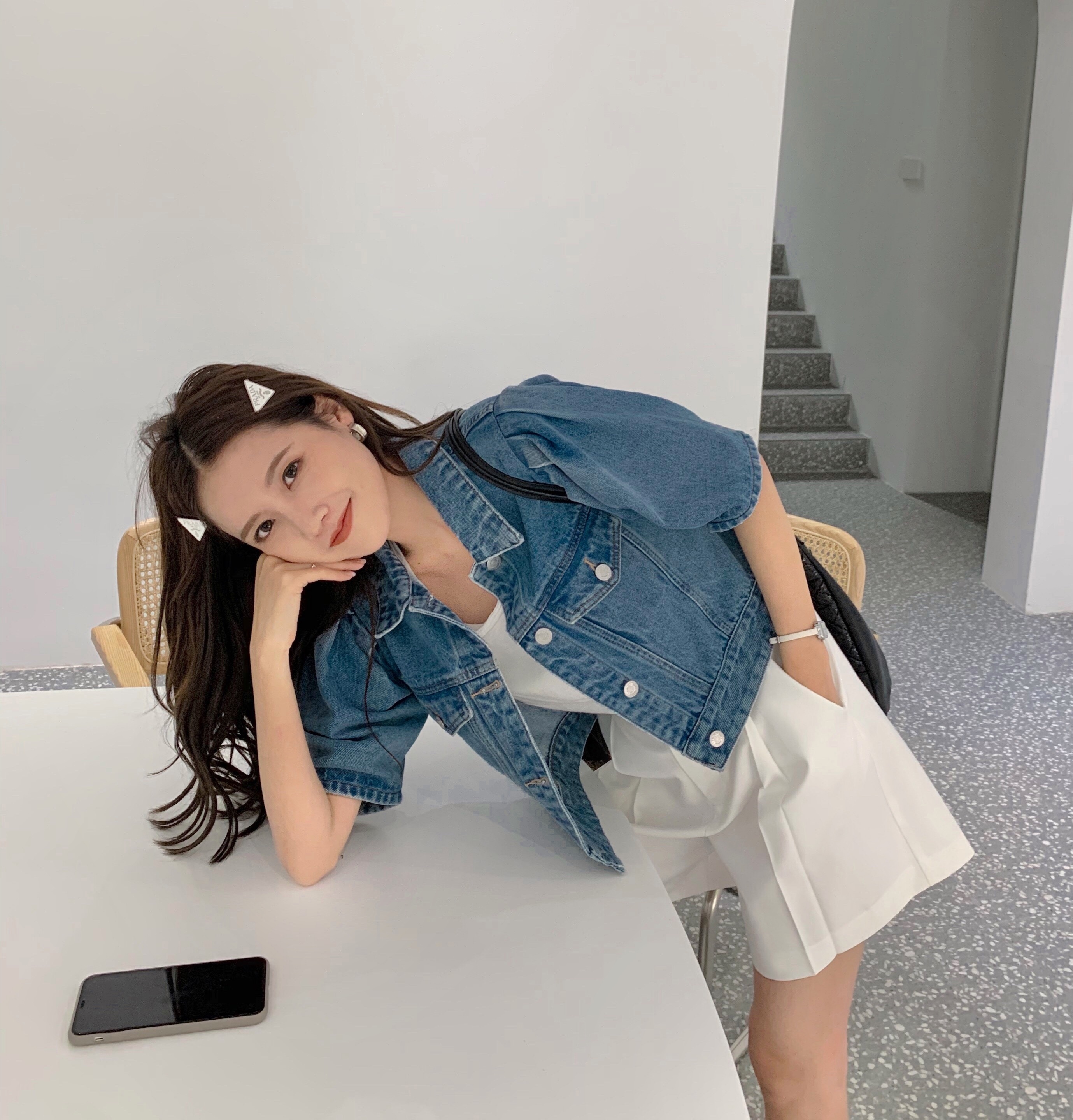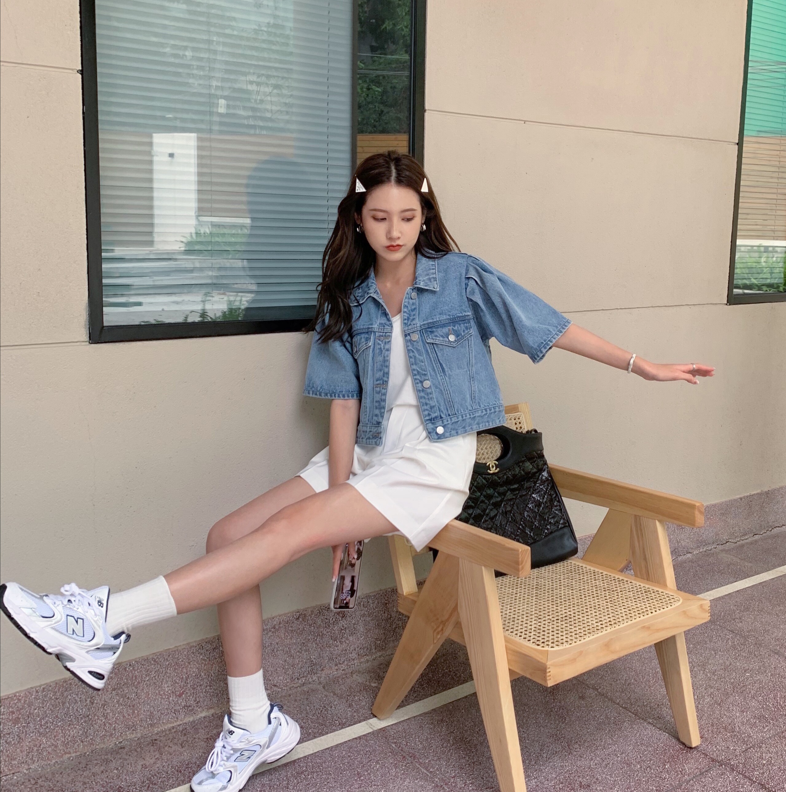 In early summer, the sun is shining, the warm breeze is blowing, and the temperature is gradually rising. It’s time to wear cooler items. A white T-shirt paired with denim outerwear has a campus feel. The refreshing feeling of white and the vitality of denim blue The combination of the two colors makes people look fresh and neat. Choosing a short-sleeved denim jacket on the sleeves can reveal the slender arms of the fairies. Pairing some exquisite bracelets and watches on the wrists can add to the overall fashion sense!