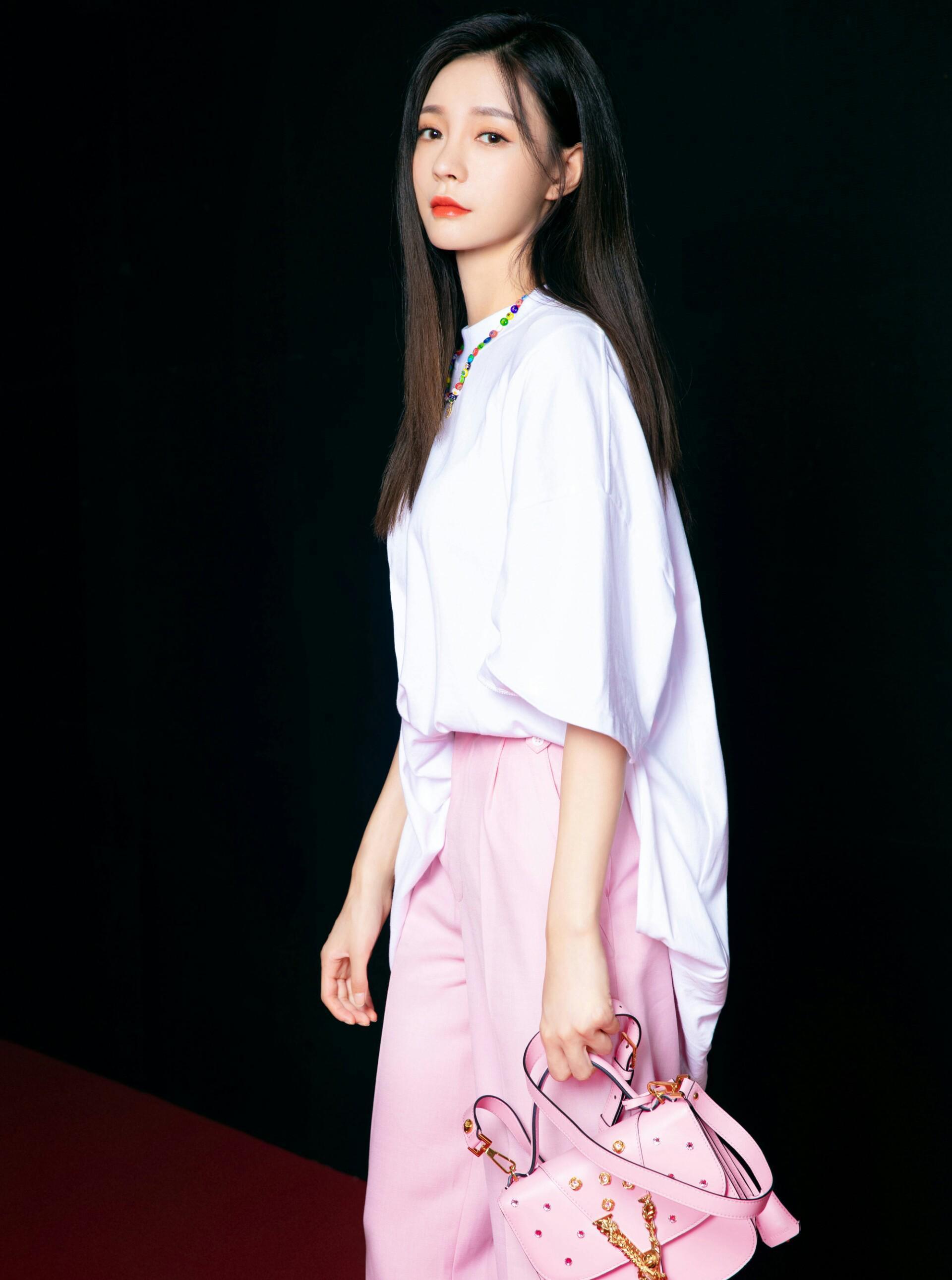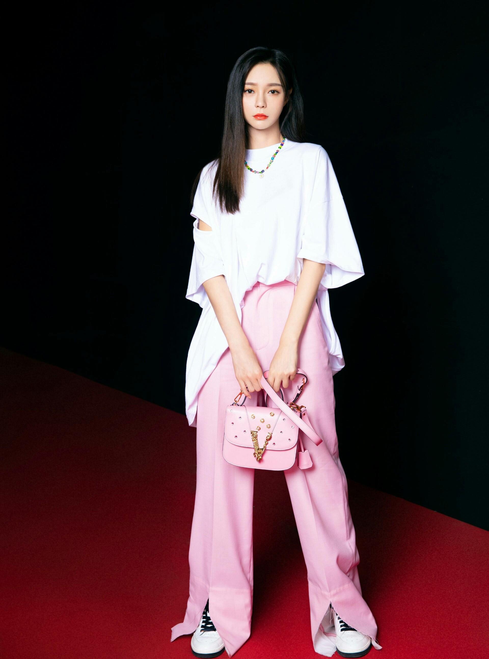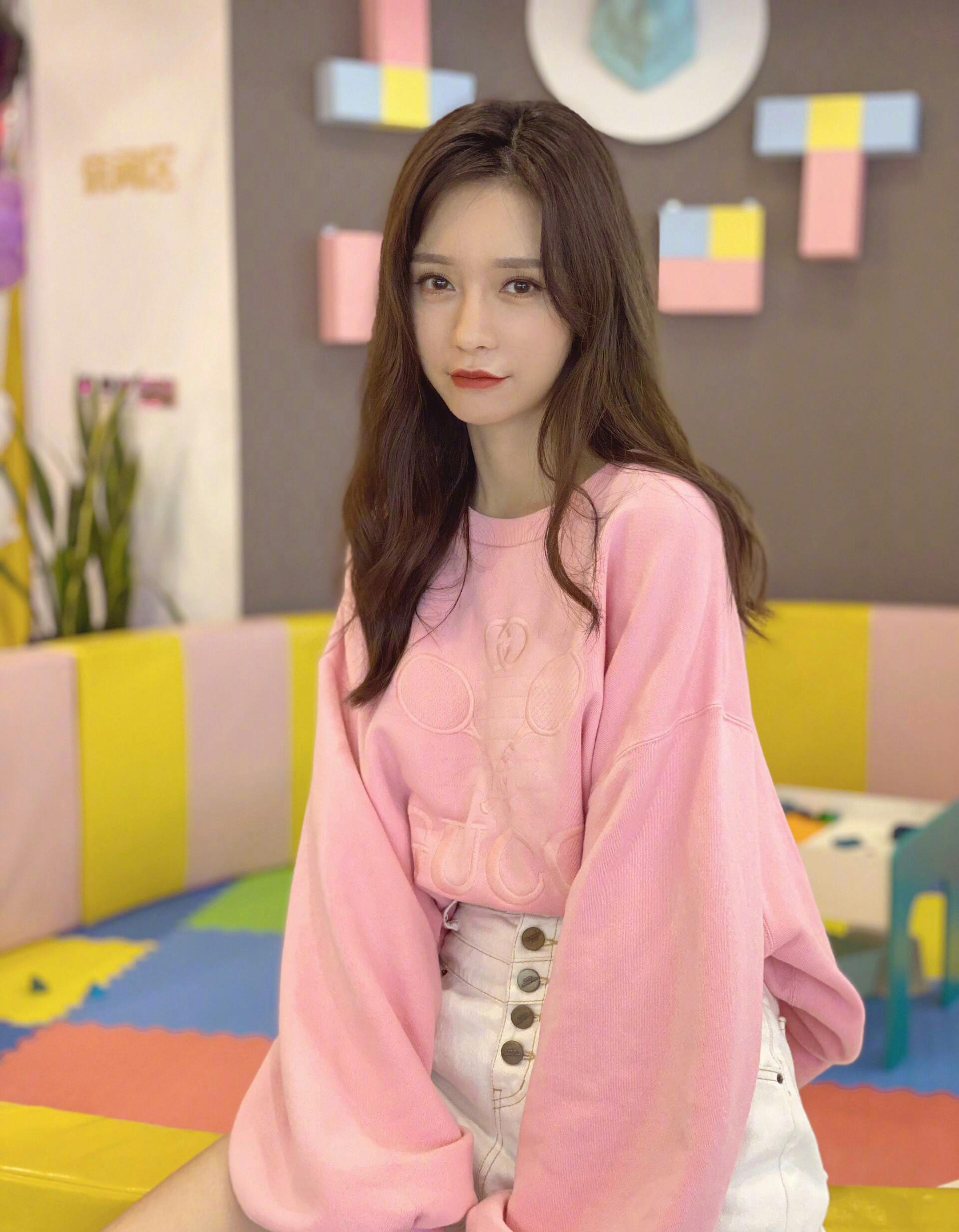 I have to say that Shen Mengchen is very suitable for this kind of pink clothes. A pink loose sweatshirt paired with a pair of white shorts.It has a girly vibe and is very suitable for student parties. Office workers can also try it, which can achieve an age-reducing effect.