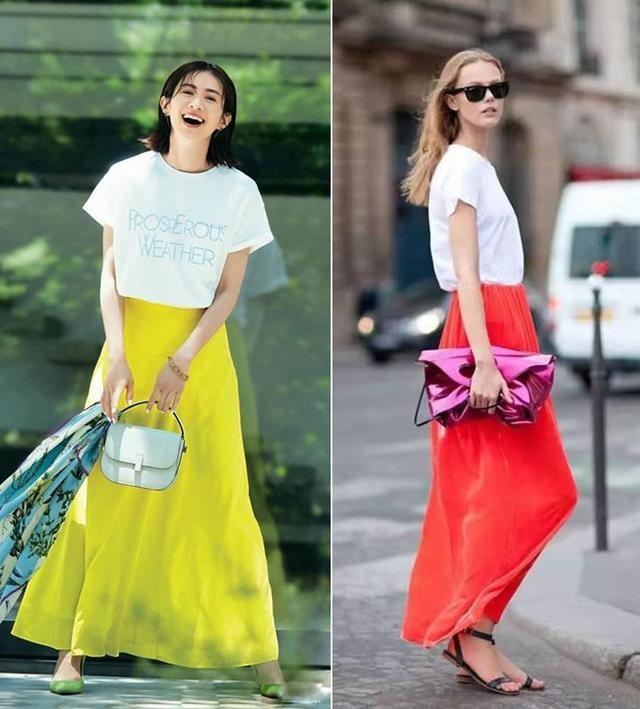 You can also boldly wear a white T-shirt when on vacation, but the overall color matching can be slightly Be bold and use a basic white T-shirt with a colorful skirt. This color matching method is refreshing and clean and can present more of a holiday atmosphere through the colorful skirt.