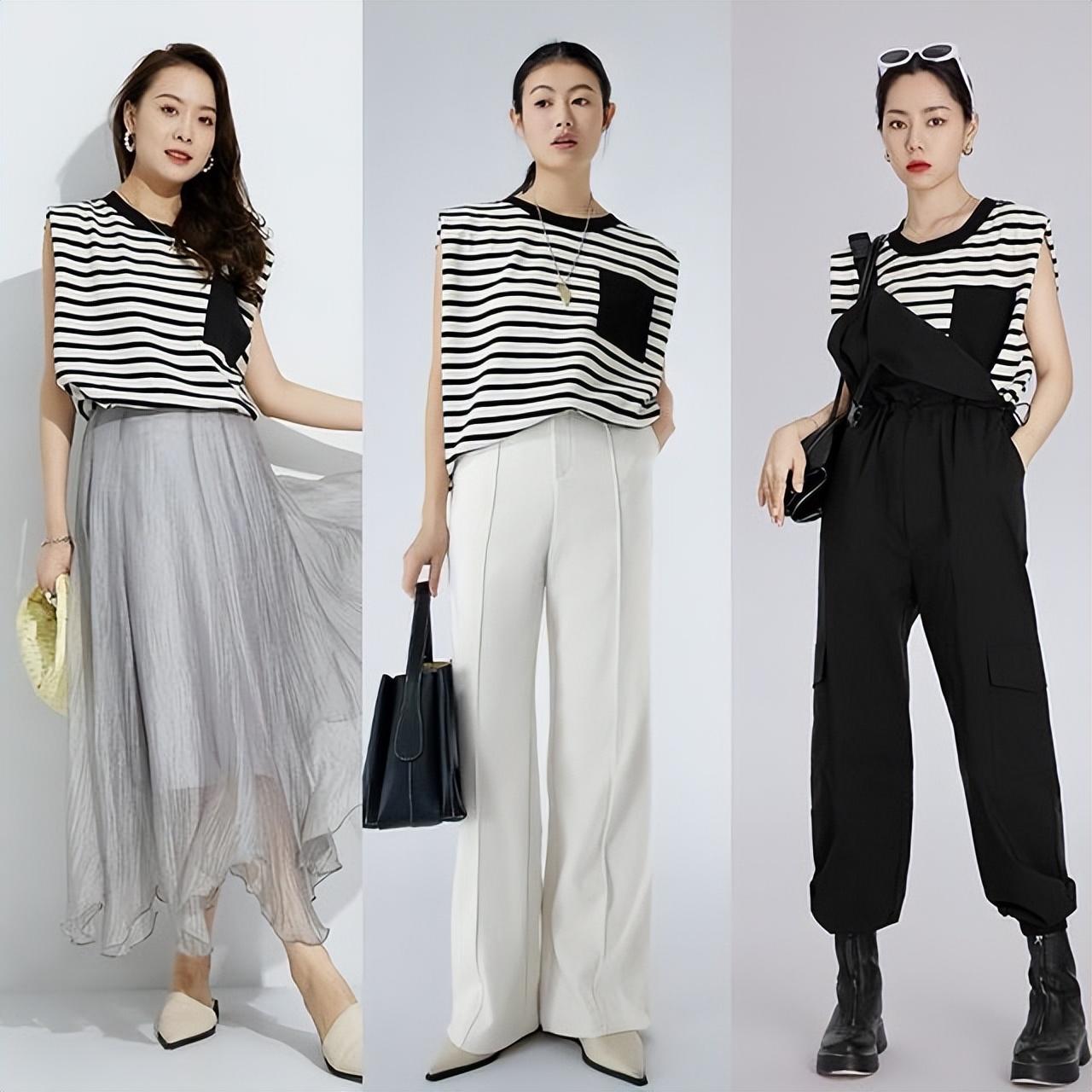 However, when wearing striped T-shirts, you need to pay attention to choosing the right direction. Generally, the horizontal striped elements will appear to be stretched horizontally, which is very suitable for people with special figures. Skinny women.