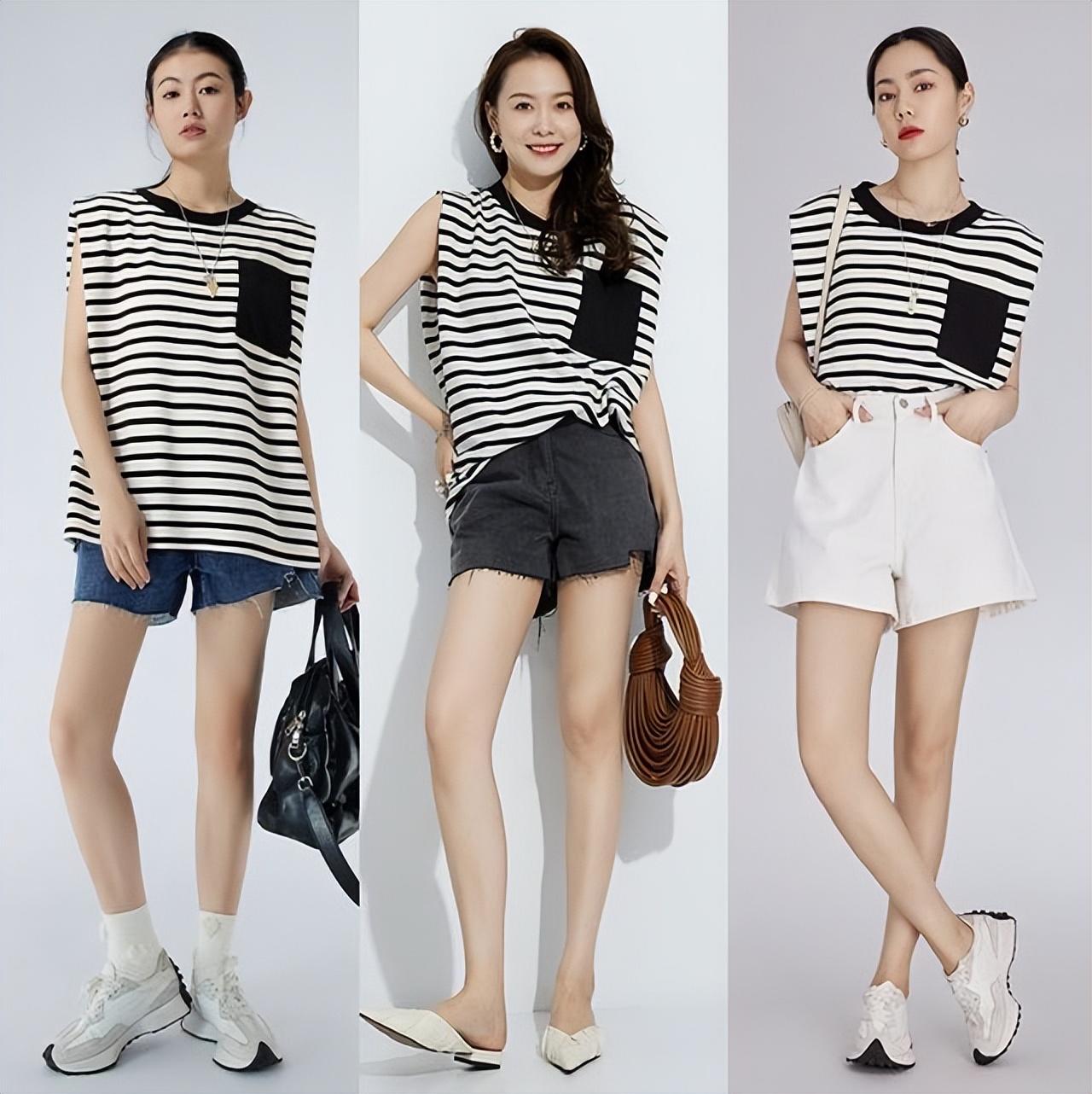 Girls with better body conditions can try shorts or short skirts when wearing striped T-shirts, and use bold leg-exposing styles to slim down their figure lines. The sense of superiority is demonstrated.