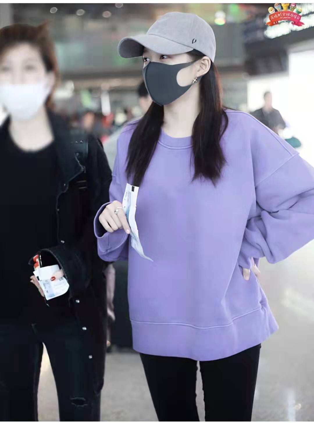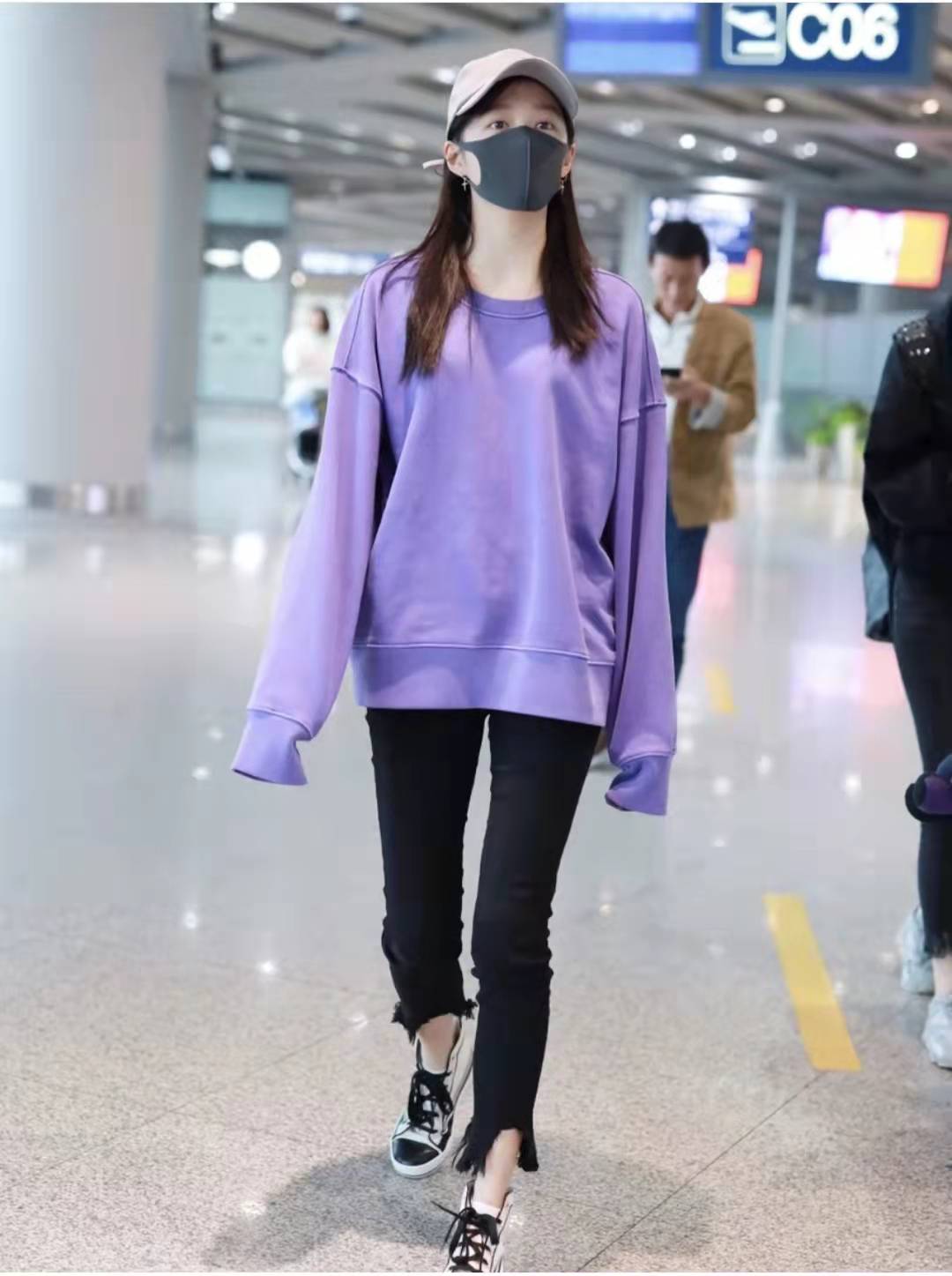Sweatshirt matching: Purple sweatshirts are very suitable for outfits. They look good when worn alone or under a jacket. They are white and eye-catching. This look isPair a purple sweatshirt with black jeans and sneakers for a simple and casual look. Wearing a baseball cap will look more casual.