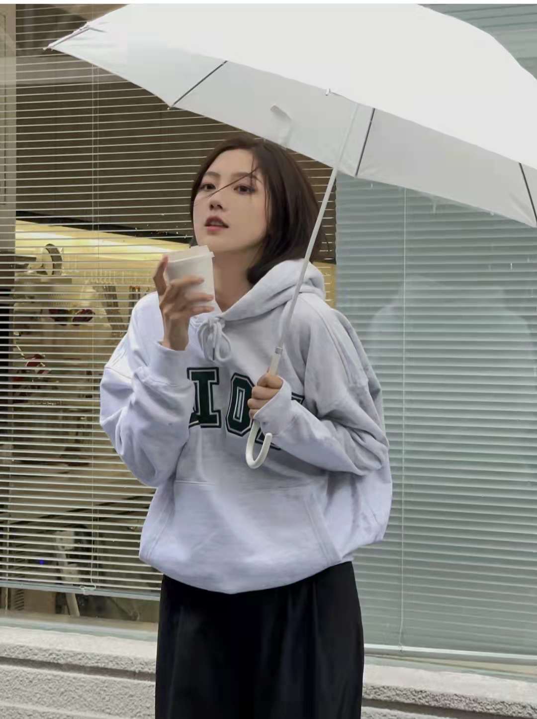 Sweatshirt outfit:Wearing blue in early spring is super white. Blue is the color of spring and gives people a feeling of vitality! The large version is most suitable for those with missing lower body, making the legs appear slim and long! The clothes have a hooded design + letter print pattern, which is both age-reducing and fashionable. The shoes are also silver mid-calf Martin boots. One set is very special when going out on the street.