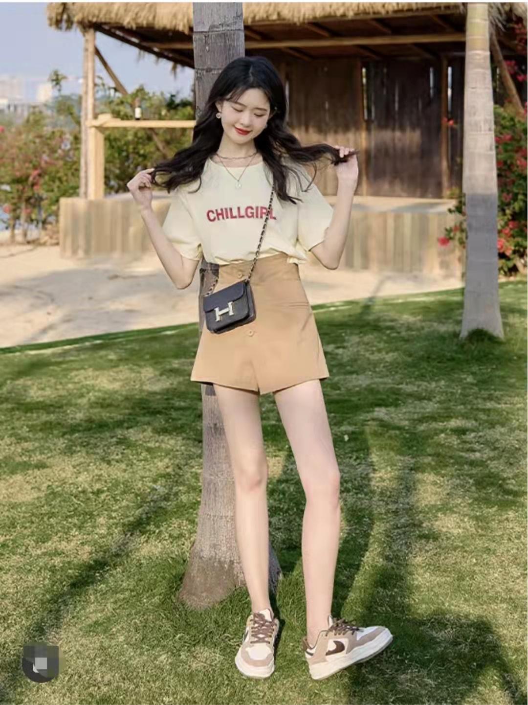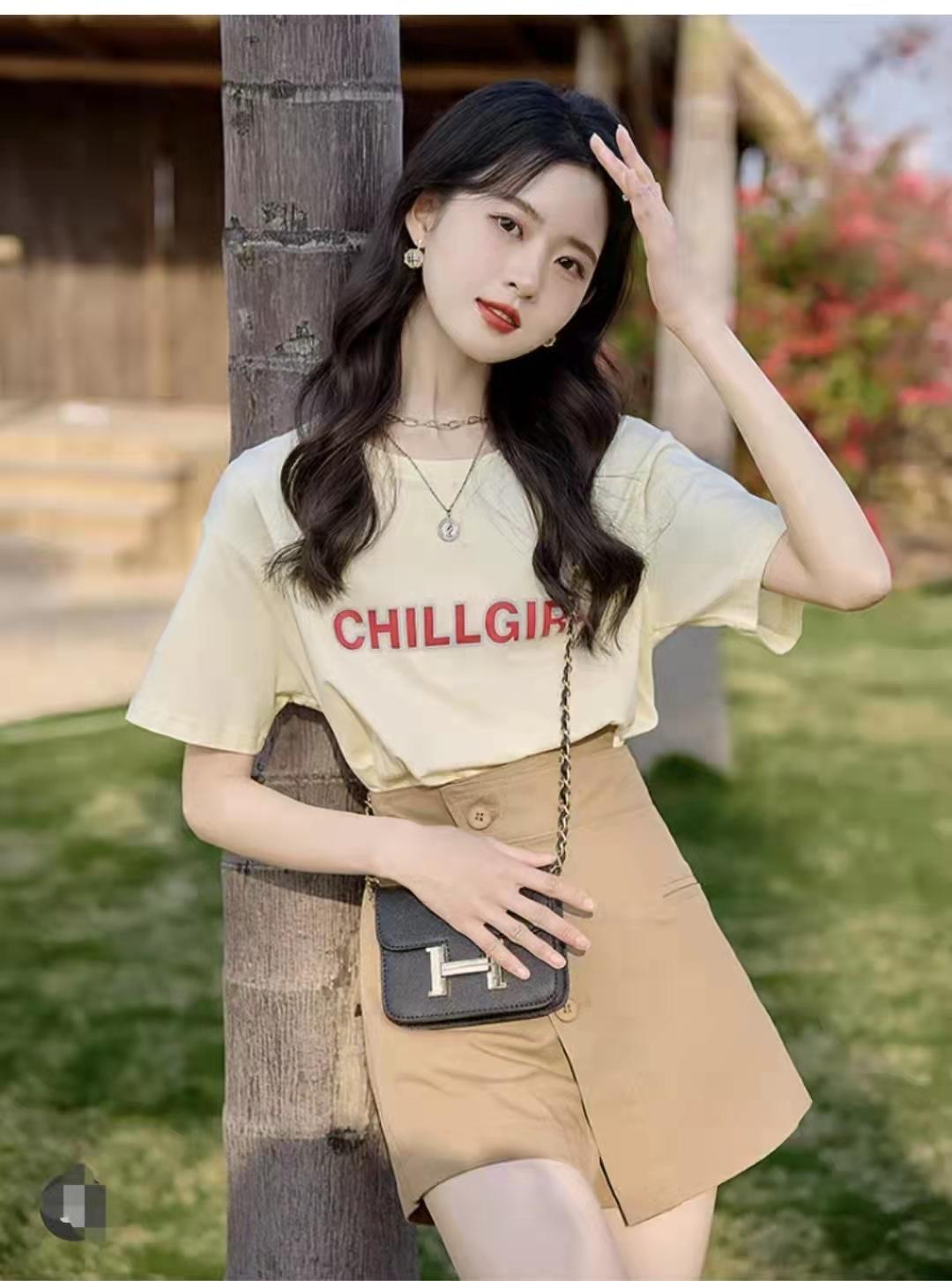 This simple T-shirt is made of 100% cotton fabric, which is soft against the skin and light on the upper body without burden. , very sweat-absorbent, breathable and not stuffy. The round-neck design is not flattering to the face shape, casual and just right to reveal the slender collarbone. The apricot color is casual and energetic. The letter print design makes the simple T-shirt immediately have a personality and fashion. It can be said to be matched with a short skirt. They complement each other, have a fresh and sweet temperament, and have a sense of girly fashion.