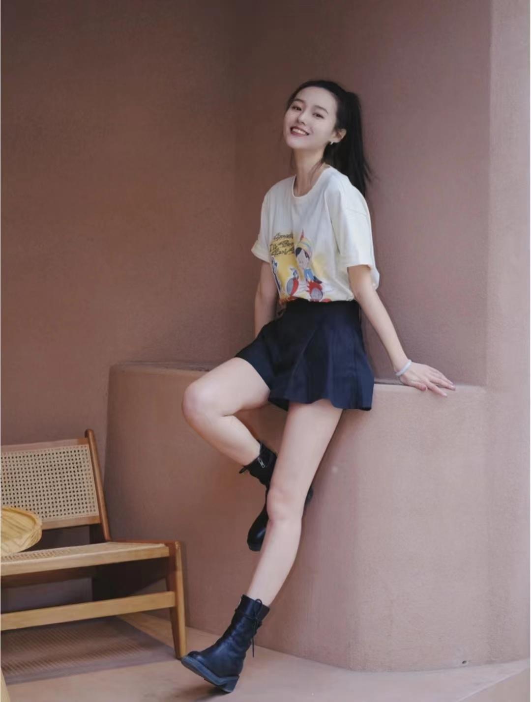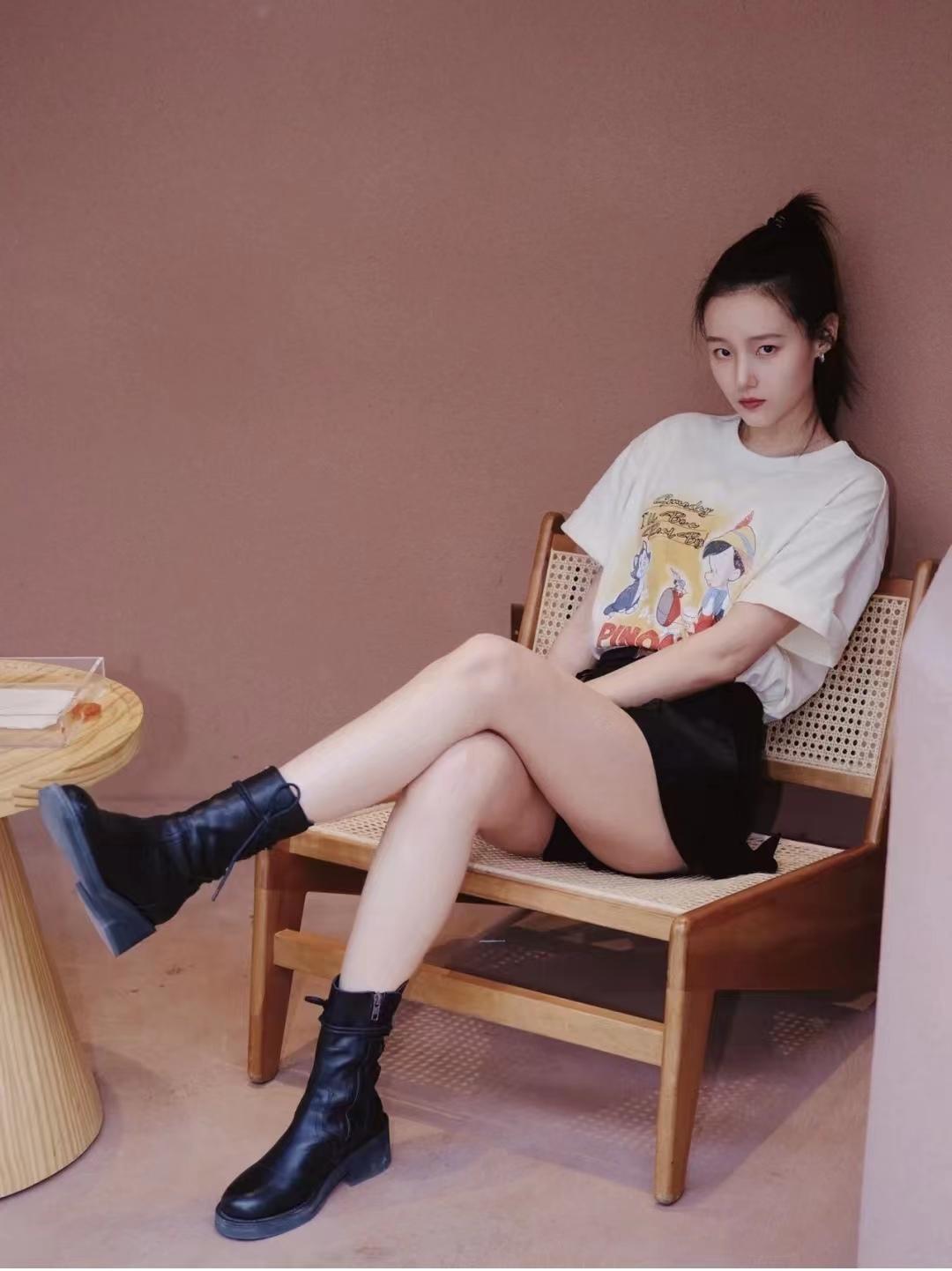 I originally wanted to be a handsome girl when I put on black Martin boots, but If something seems wrong when you smile, then continue to be a sweet and salty girl. This outfit is simple and easy to control. The cute Pinocchio T-shirt is paired with high-waisted shorts. The body proportions are perfectly presented, and the girly look is full of youthful vitality.