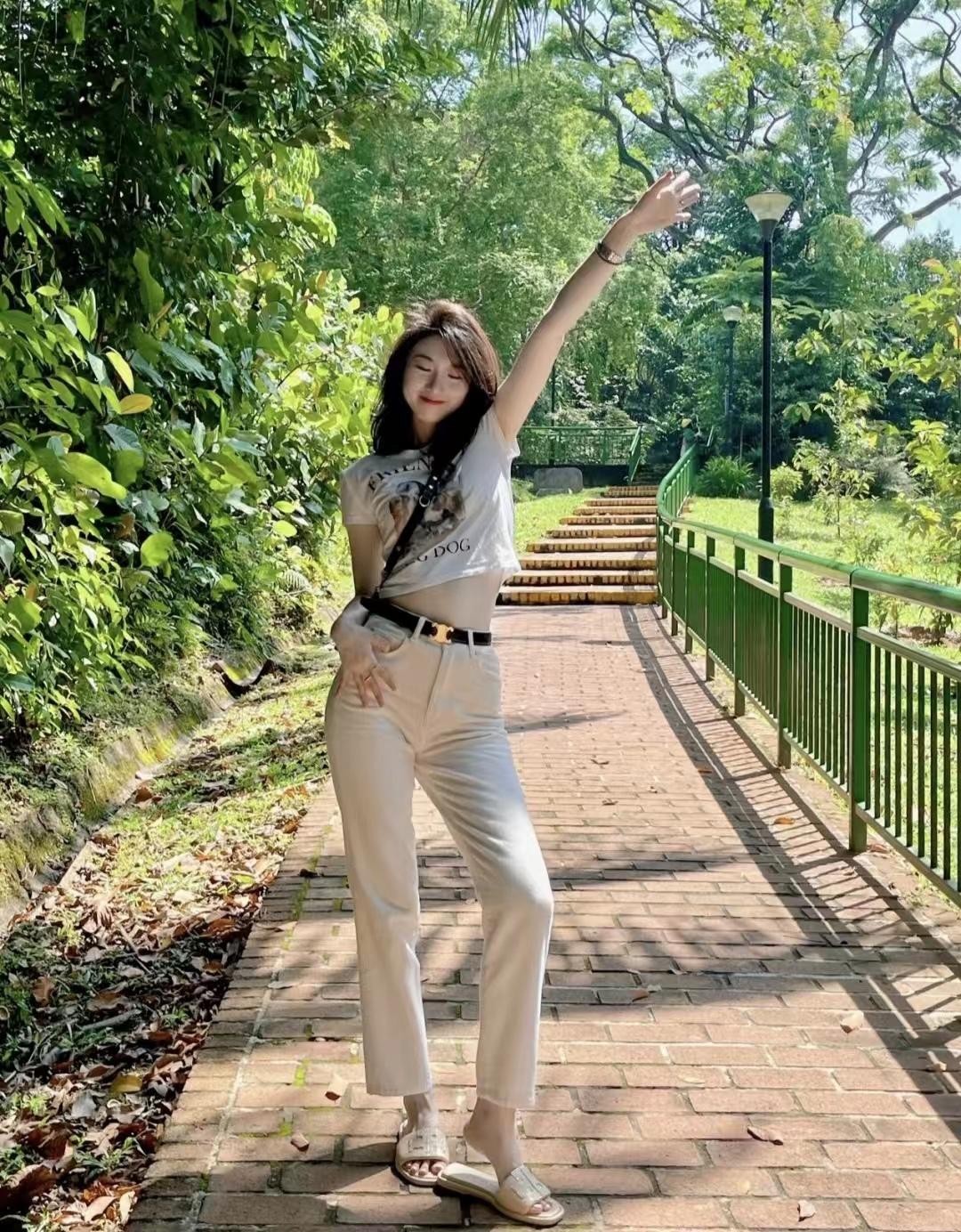 White jeans are really a versatile item in summer. The shape and fabric of this pair are really good. So awesome, so thin that you have no friends! I specially chose the straight version, which is more suitable for more occasions than the wide-legged and tight-fitting version. Paired with a white T-shirt, it looks girly.