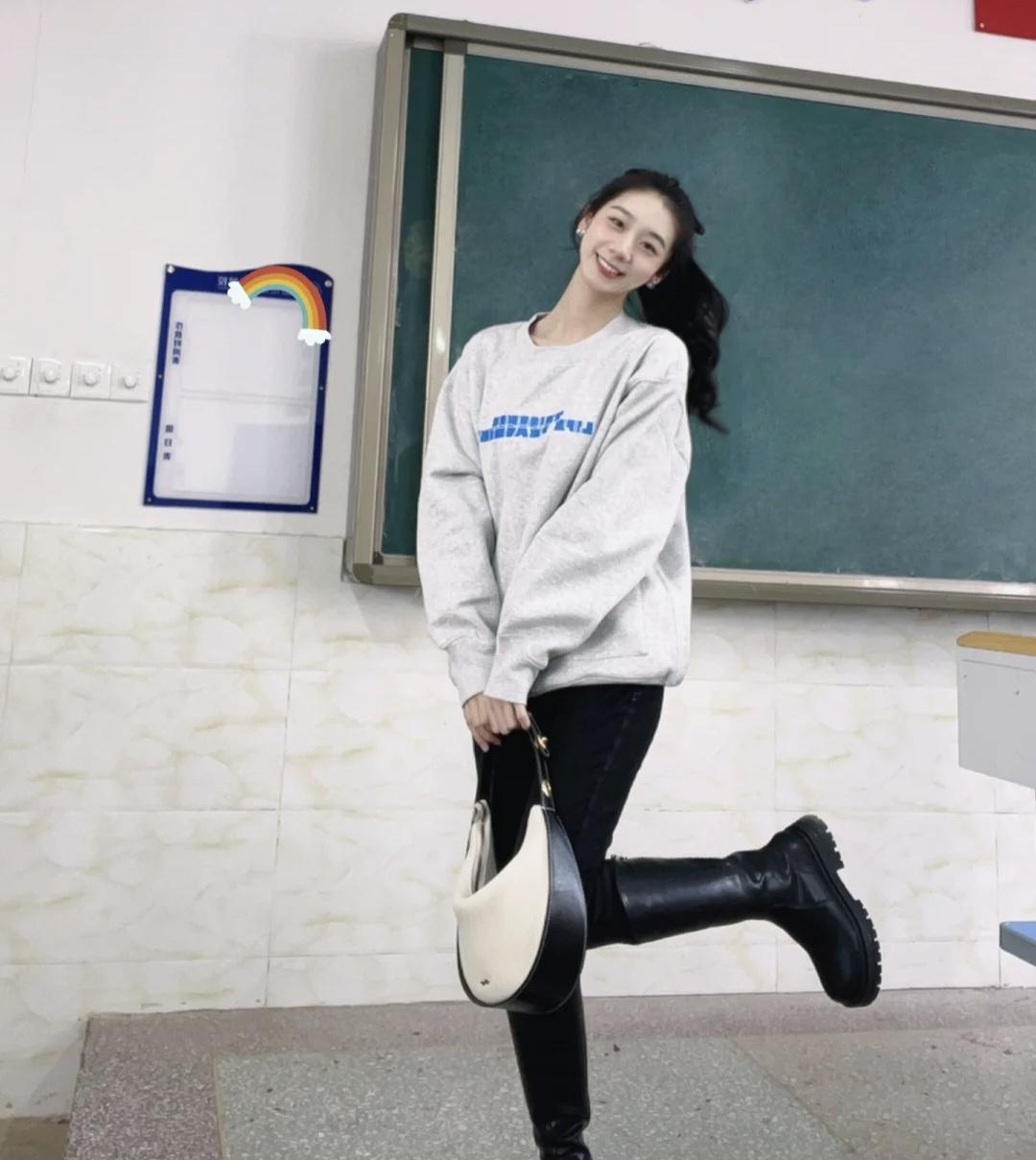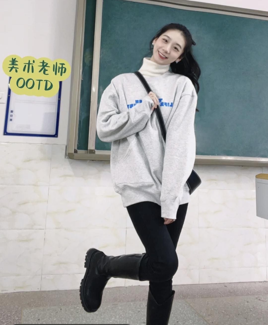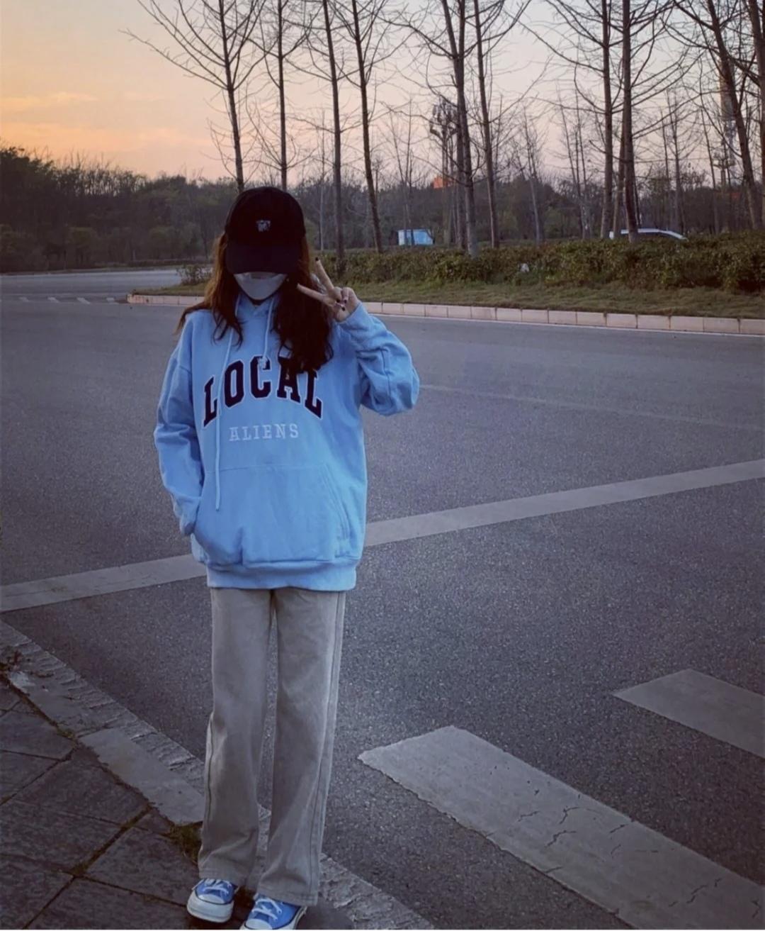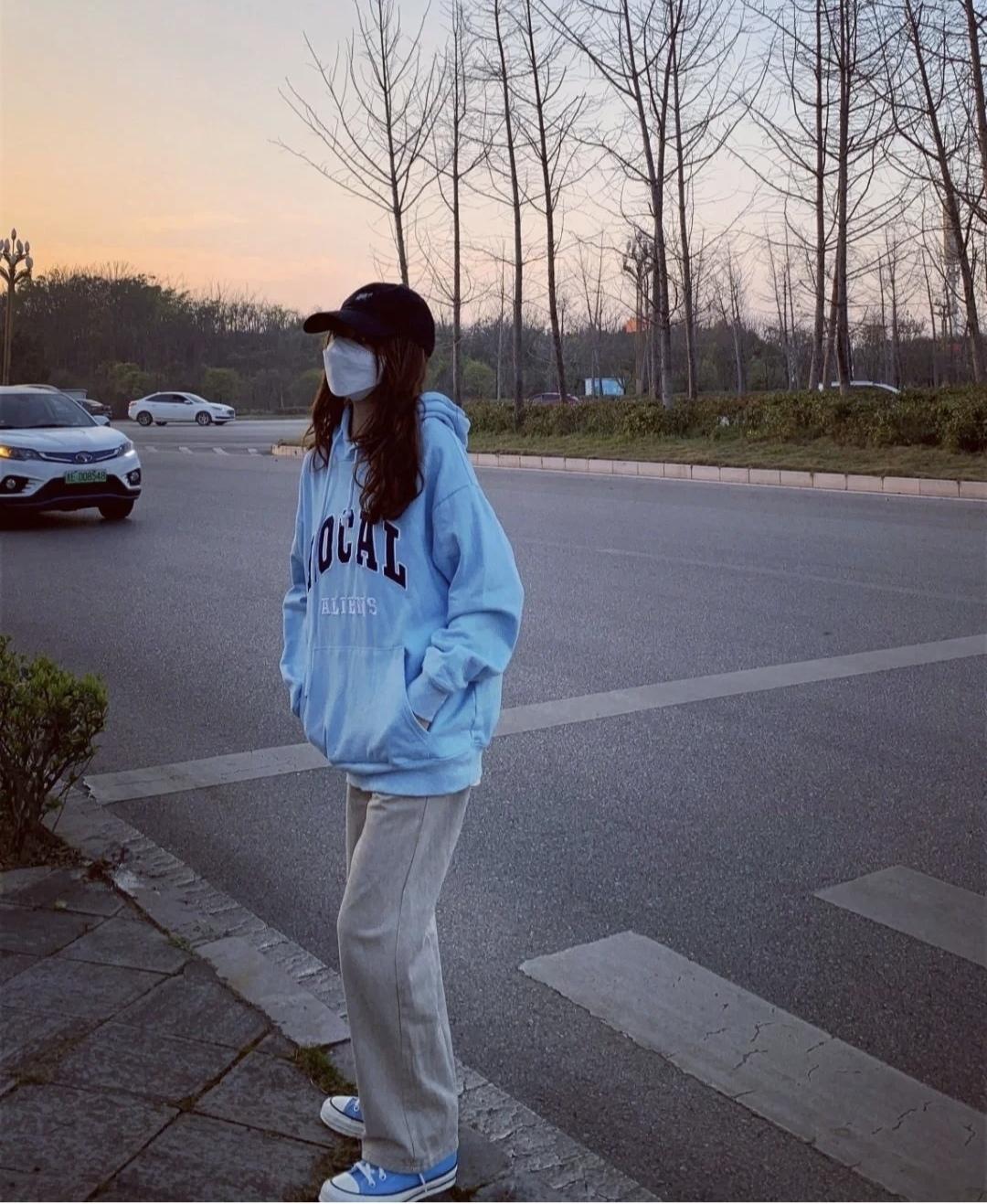 Putting on this year’s new sweatshirt, I still choose light gray because gray is versatile. The gray combination can be very masculine or gentle. This combination is very similar to that of a Korean college student. It is youthful, age-reducing, simple and attractive.