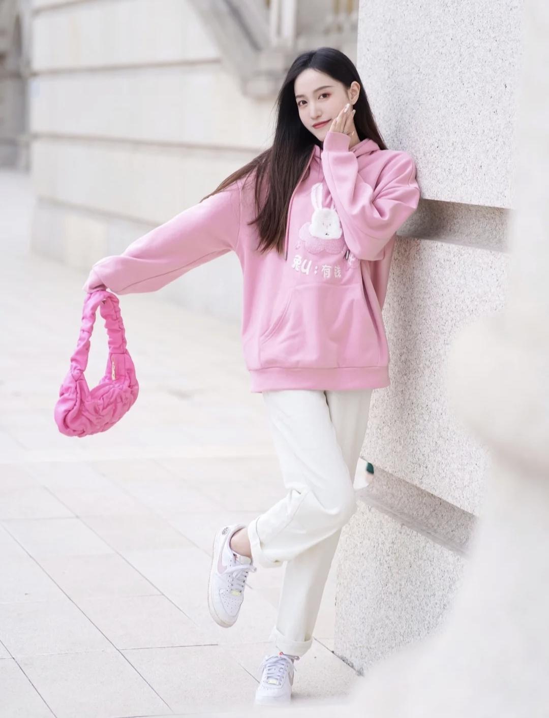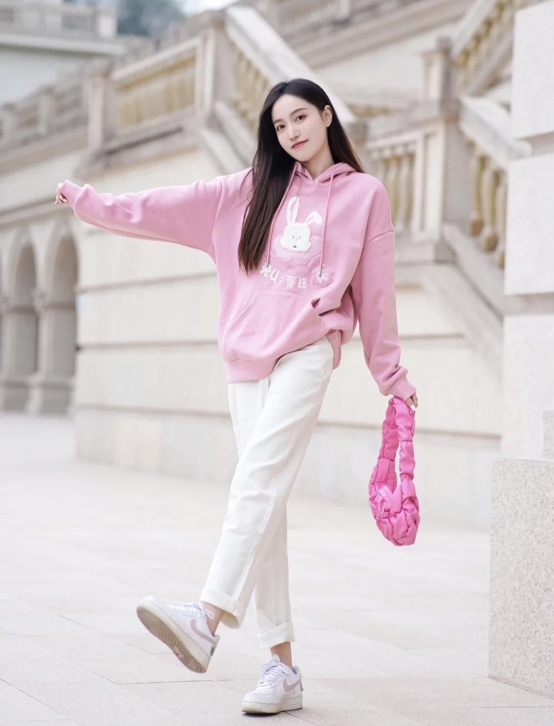 Pink sweatshirts are really girly. Girls will look particularly cute when wearing them, and boys will also have a youthful vitality when wearing them, so don’t reject them. oh.
