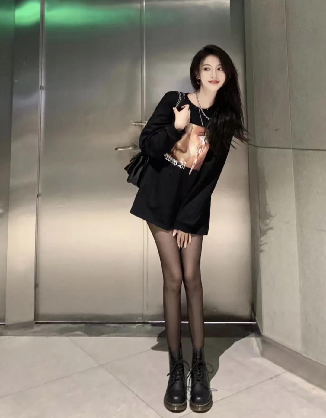 Sweatshirt + black silk shorts yyds, I learned this look from Yang Mi. It looks great without the lower body, and it shows off the length of the legs. I have compiled 3 sets of sweatshirts. Sweater + shorts/skirt + black silk are really good. Absolutely.