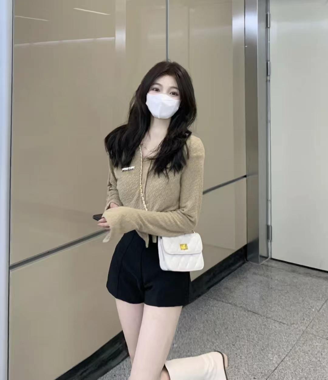 In the late summer and early autumn, the weather is slightly cool but not dry. It is a good choice to wear a sweater with shorts to create an illusion that the lower garment is missing. Pair it with a pair of high-heeled shoes to make your legs look longer, especially for girls with good-looking legs. You can also replace the short boots with canvas shoes to add a more handsome look, which is a very youthful and energetic way of matching.