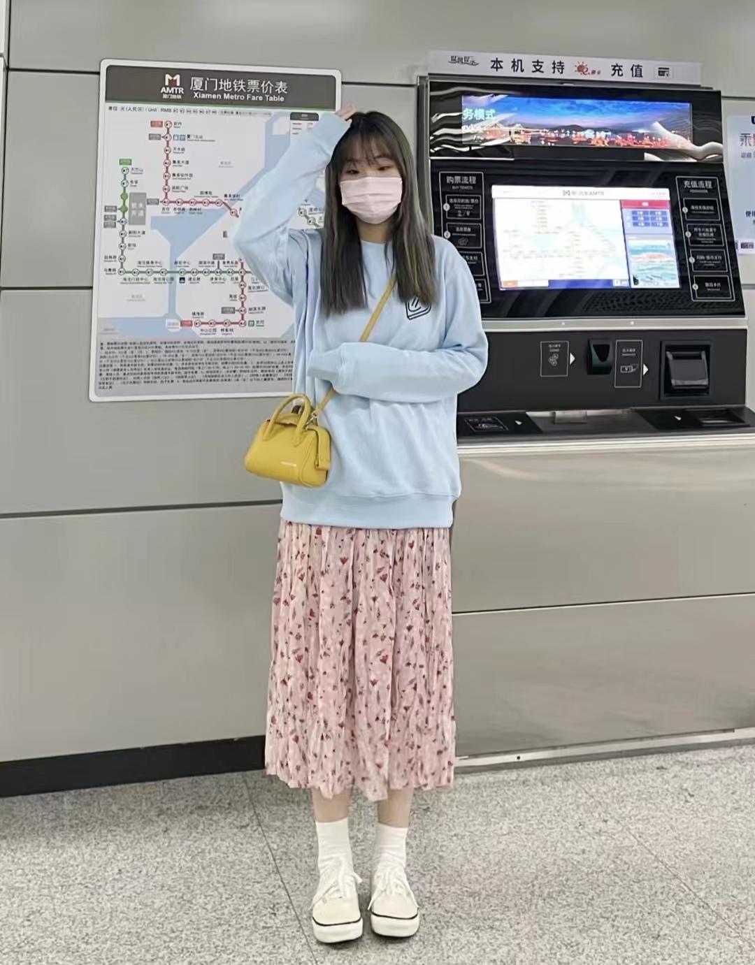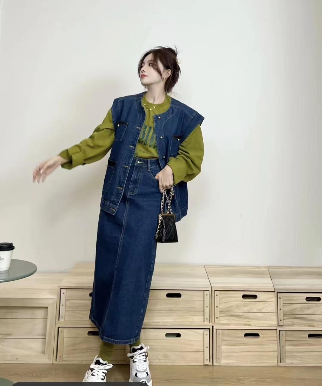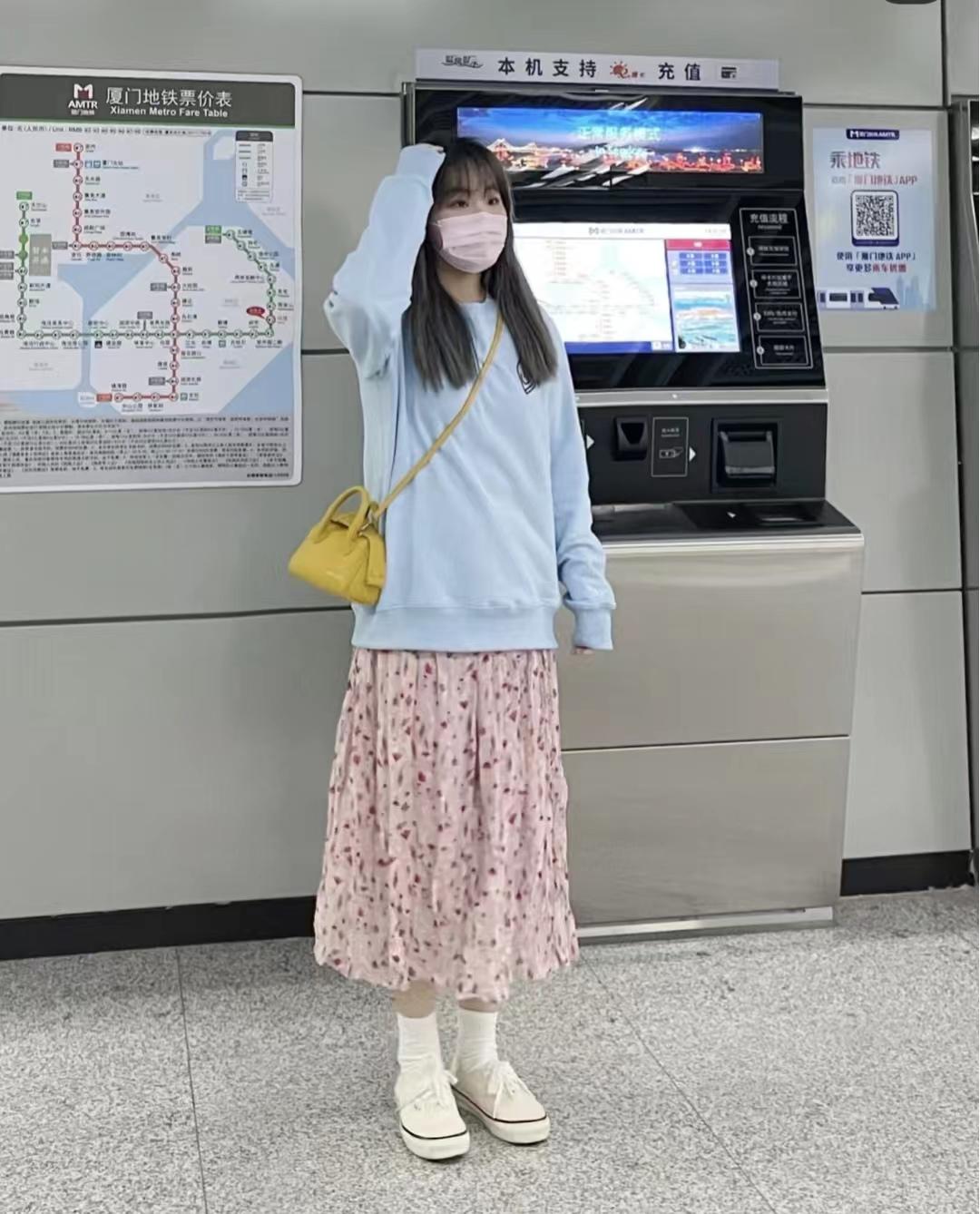 Early spring is perfect for wearing sweatshirts! The light blue sweatshirt gives people a gentle and fresh feeling. Paired with a denim skirt of the same color, it is lazy and fashionable. When paired with a complete set, it becomes more efficient when going out!