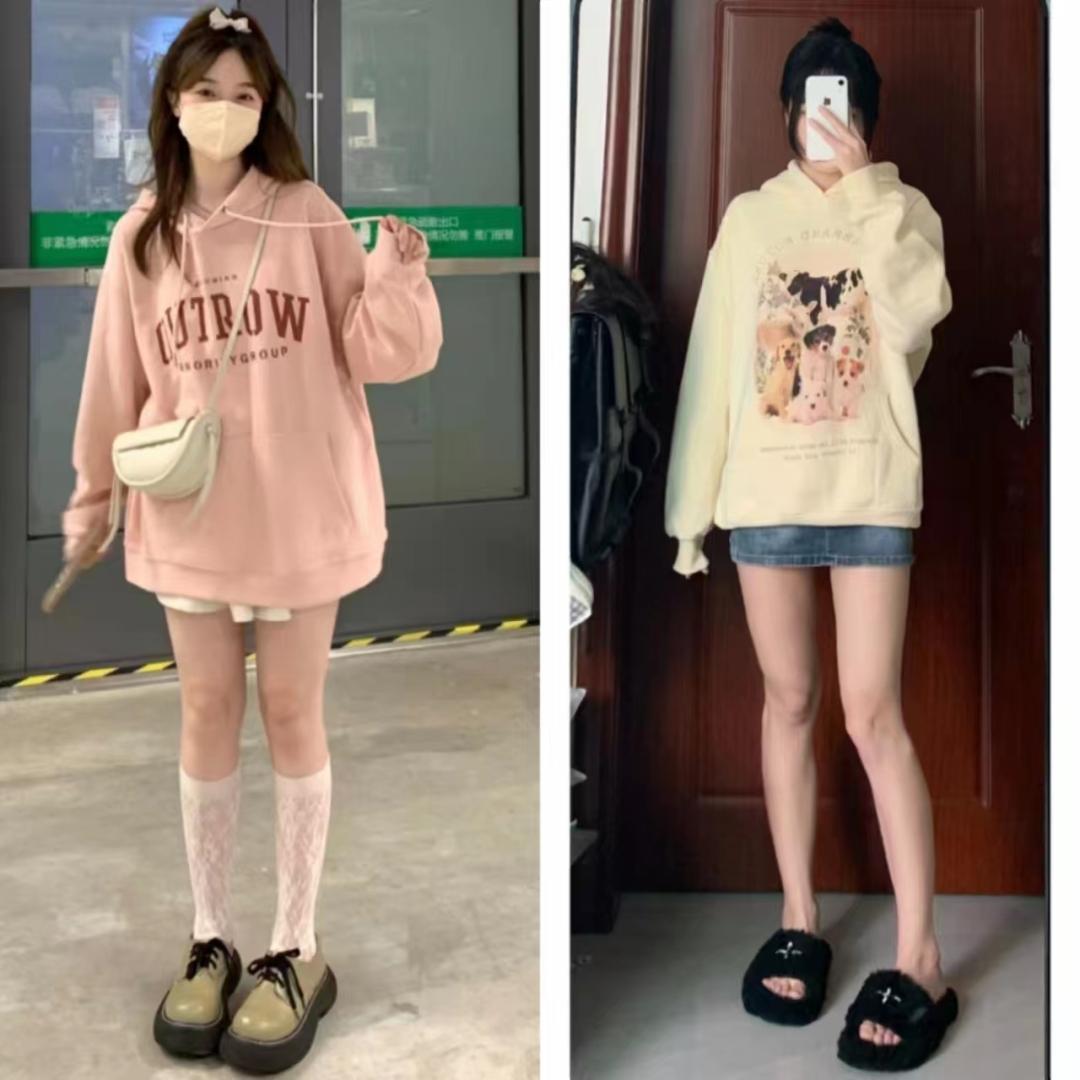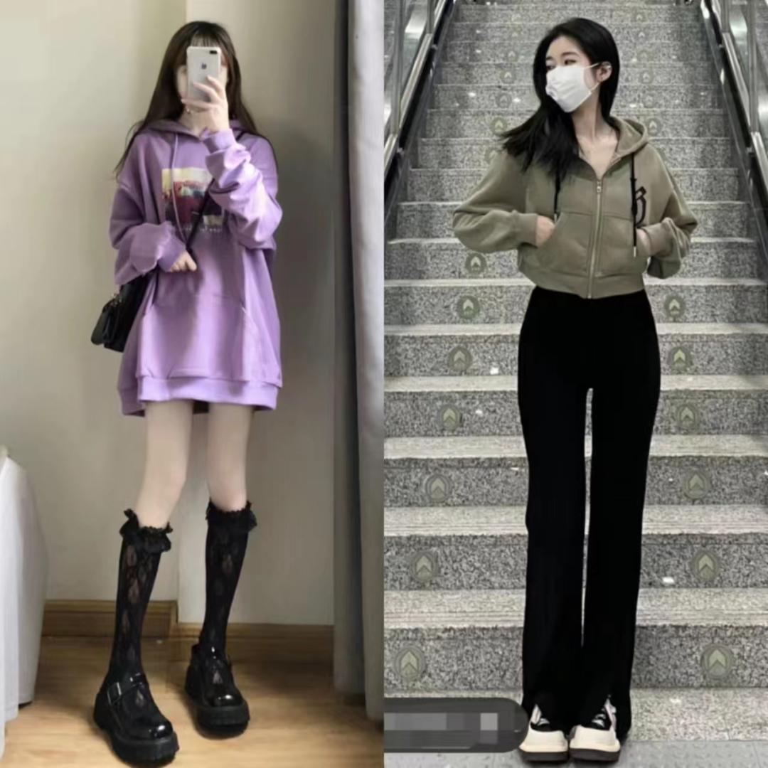 Generally speaking, the length of a sweatshirt can be chosen according to your body shape. Tall girls can wear it no matter what. If they are short, then choose a length of up to Sweatshirts worn around the waist or hips are more suitable, as they not only make you look taller, but also increase the beauty of your figure.