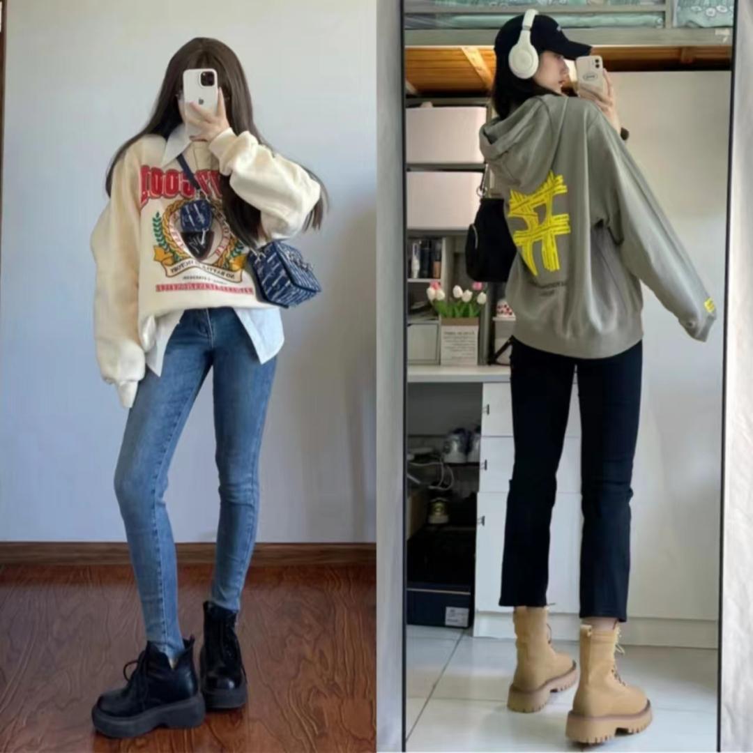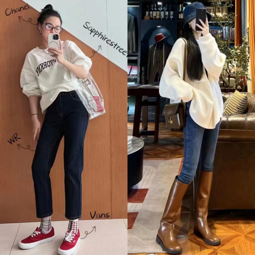 Jeans are the most popular everyday item Practical matching items��, the style combined with a sweatshirt is even more simple and elegant, and the style is both trendy and casual. In addition, matching a sweatshirt with jeans can also create a fresh and age-reducing feeling, making people feel full of vitality.