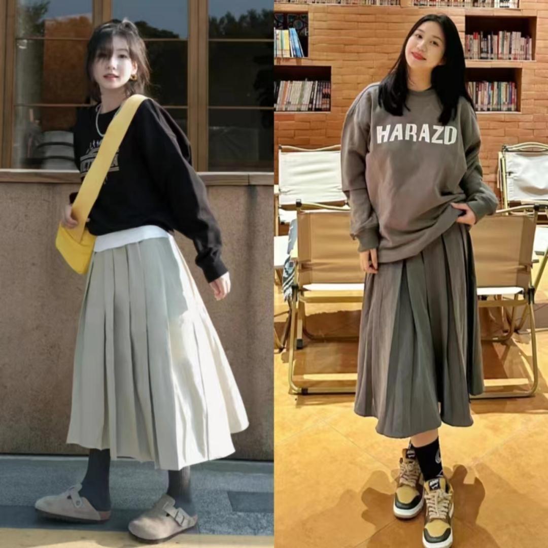 Pairing a pleated skirt with a sweatshirt can keep it casual and elegant without losing its sense of elegance. You can choose simple solid colors or retro colors for sweatshirts. You can choose long styles, skirts, etc. for pleated skirts. The matching effect is both energetic and feminine. Pairing it with a pair of canvas shoes in spring can make you look younger and more girlish.