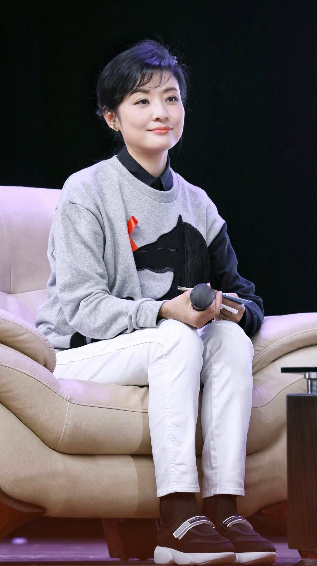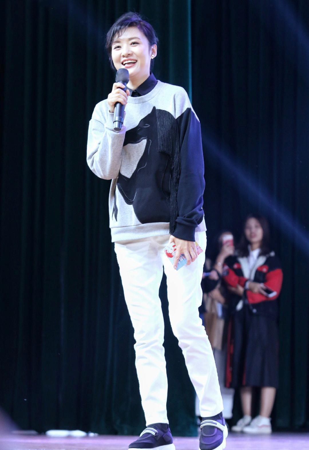 Zhou Tao, the former top sister of CCTV, appeared, wearing a sweatshirt and white pants with outstanding temperament, and she was more charming than a young girl. Sweatshirts can be said to be the most suitable item for early spring. Sweatshirts are too thin to wear in autumn and winter. Wearing them in cool early spring can better show off the style of the sweatshirt. Zhou Tao likes to wear all kinds of sweatshirts, mostly round-neck sweatshirts. Whether paired with trousers or skirts, they look younger and younger.