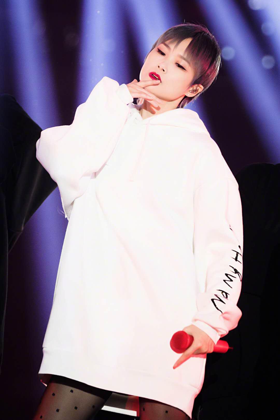 Everyone is familiar with the sweatshirt. Compared with the cute and casual round-neck sweatshirt, the hooded sweatshirt has a more casual and free feeling. , whether worn alone or as an inner layer, it has maximum fashion power and is favored by many fashion people. Li Yuchun chose a hooded sweatshirt for this look. The pure white style is simple and fresh. The wide body is enough to cover the whole body, creating the effect of a sweatshirt and skirt. It not only reduces age and attracts attention, but also has a little sexy.